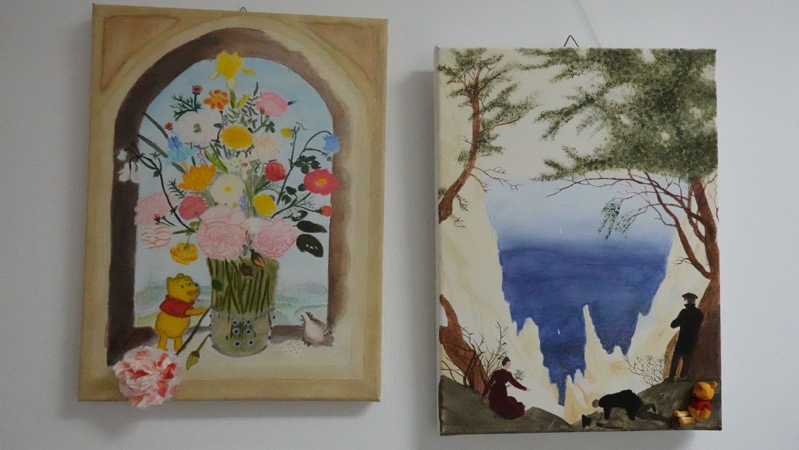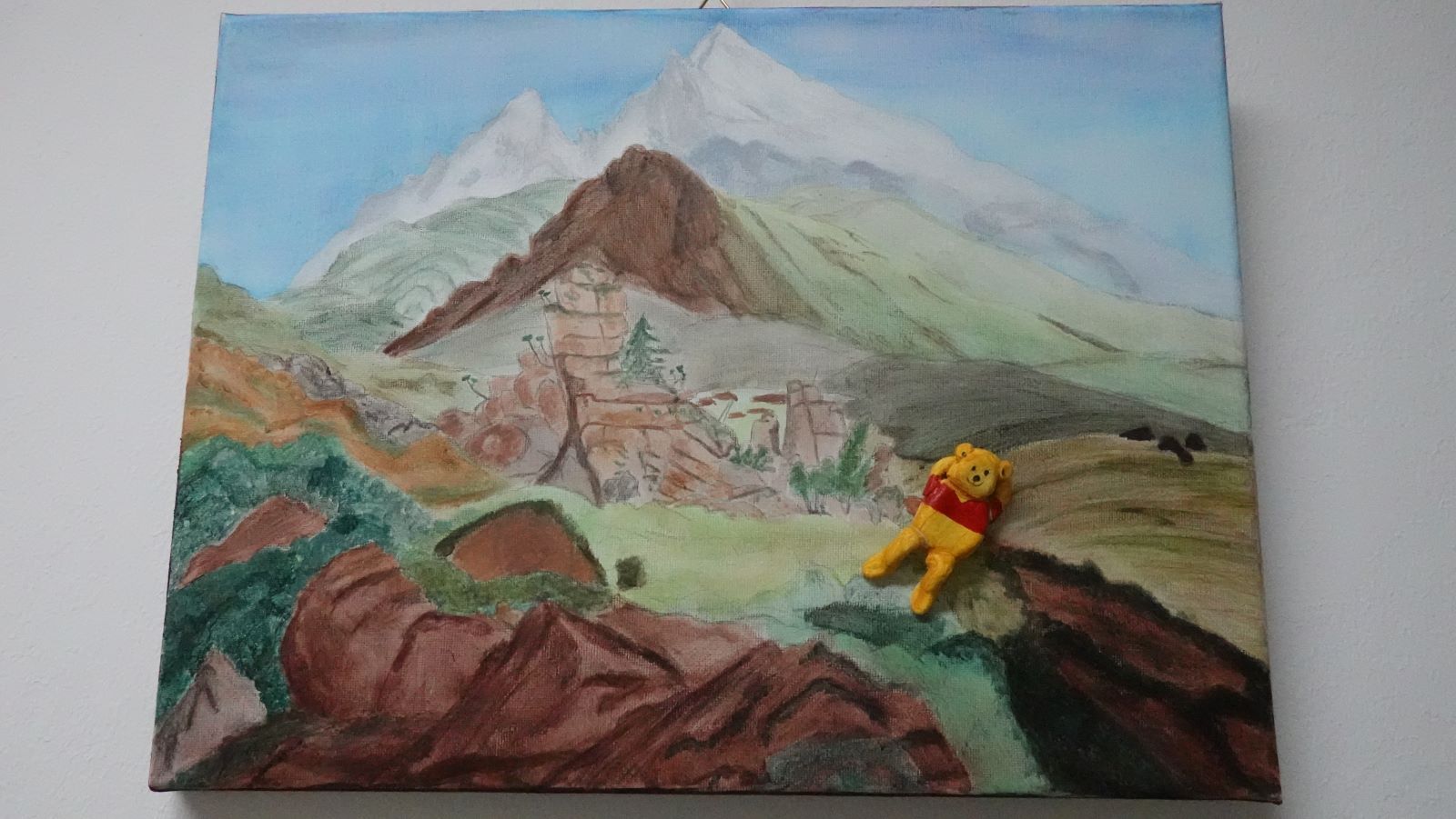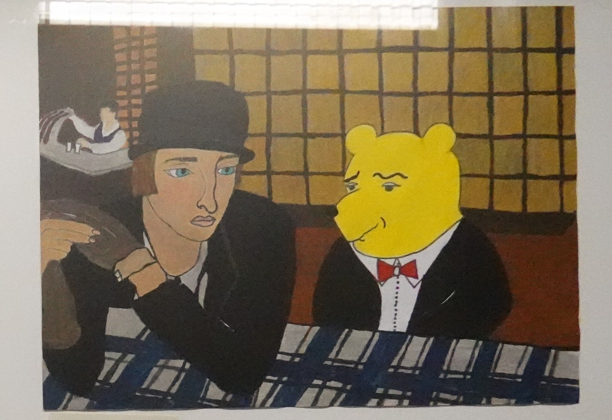 Das Thema ,,Winnie Puuh in einem Gemälde einbringen‘‘ inspirierte die Schülerinnen, ihn auf vielfältige Weise darzustellen – sei es als Mittelpunkt einer farbenfrohen Landschaft oder in einem modernen, abstrakten Stil.