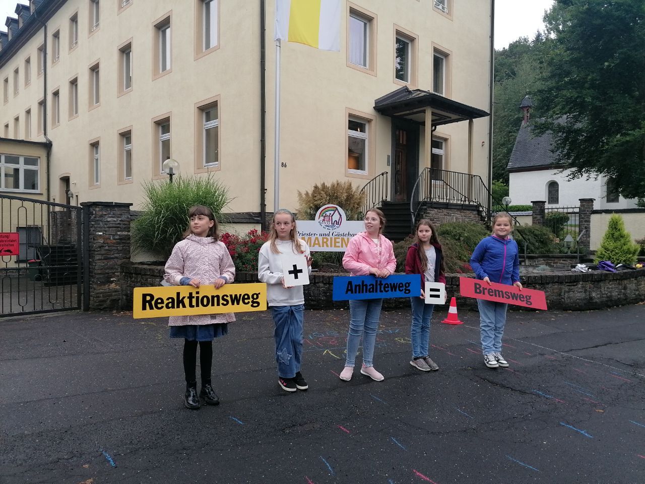 (Als fotografiert wurde, hatten die Schülerinnen die Formel Reaktionsweg = Bremsweg + Anhalteweg noch nicht korrekt aufgestellt.)