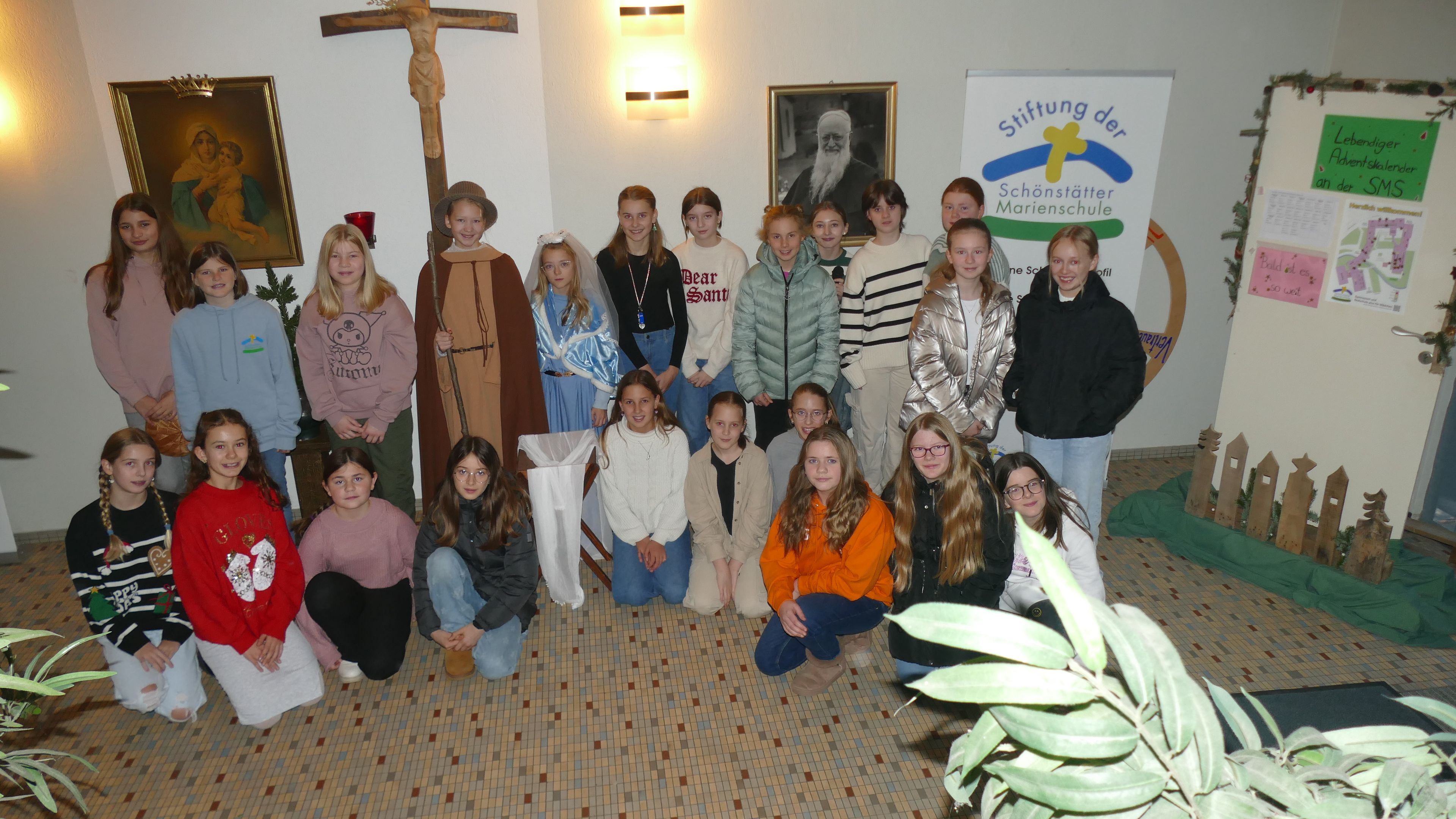 Maria, hast du gehört: Die Schülerinnen der Marienschule gestalten einen „lebendigen Adventskalender“.