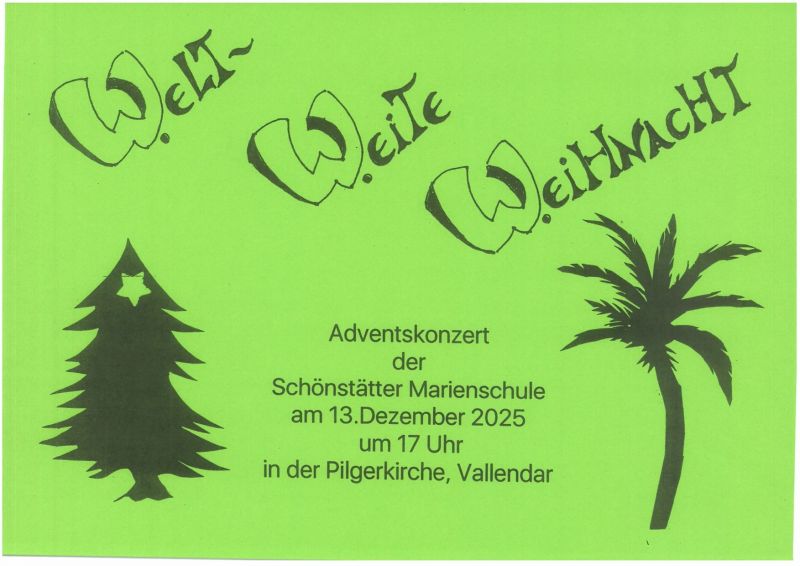 Weltweite Weihnacht“, so ist unser traditionelles Adventskonzert überschrieben, das am Samstag, dem 13. Dezember, um 17.00 Uhr in der Pilgerkirche in Vallendar stattfindet.