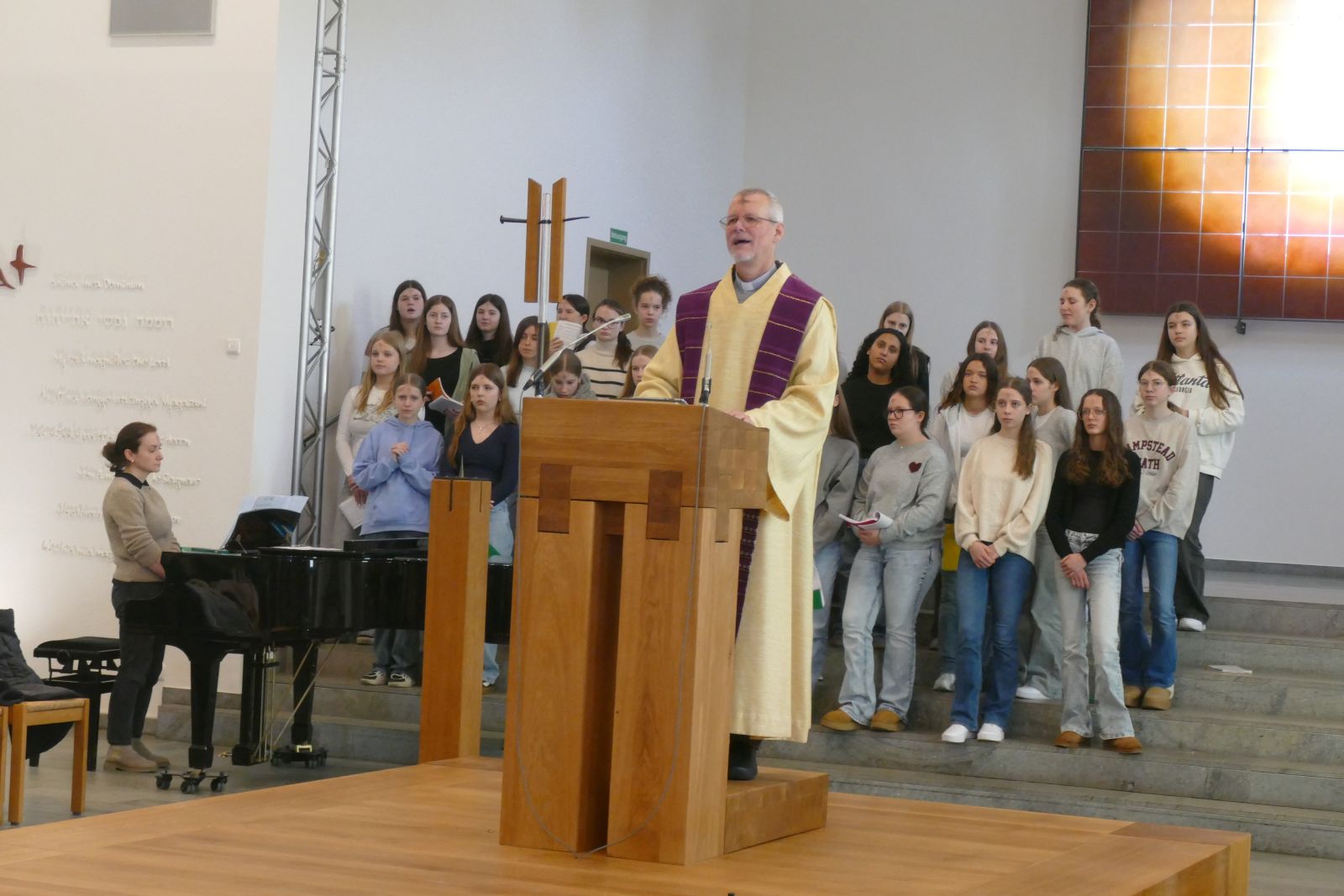 Mit einem stufeneigenen Wortgottesdienst setzten die 5. und 6. Klassen in der 2. Stunde, die 7. und 8. Klasse in der dritten und die Schülerinnen der Jahrgänge 9-13 in der vierten Stunde am Aschermittwoch ein deutliches Zeichen.