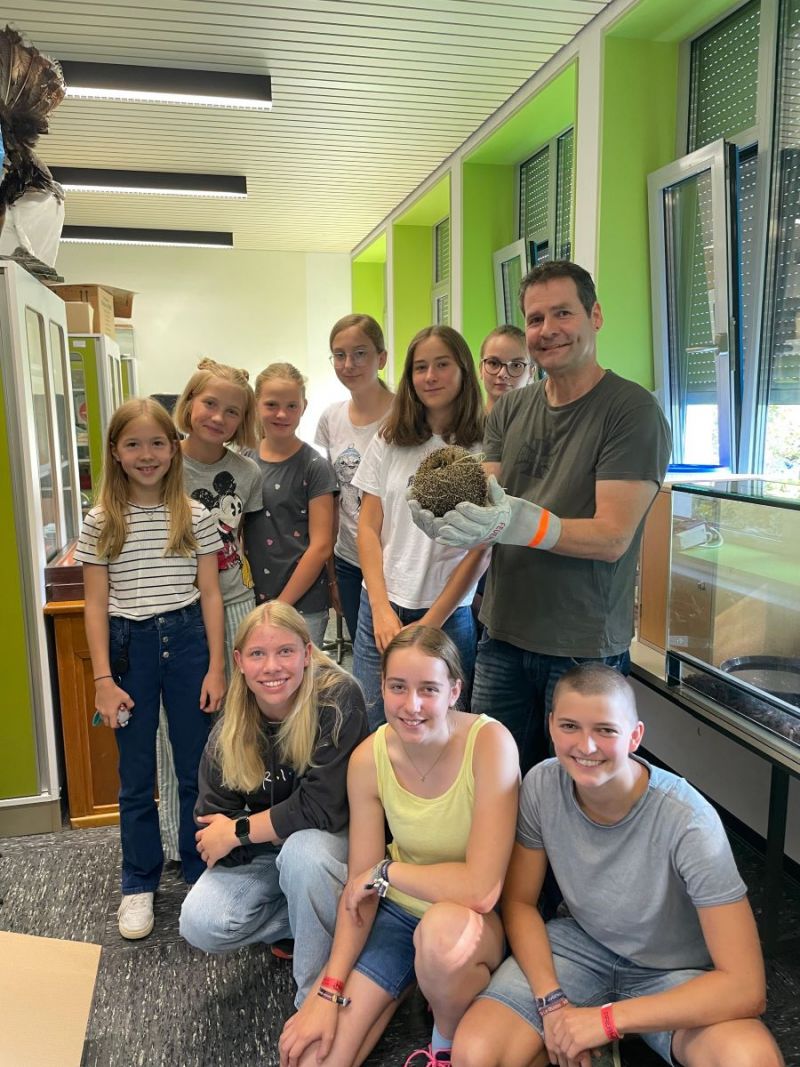 In Zusammenarbeit mit der Igelstation Kirchwald haben wir von der Artenschutz-AG wieder einmal die Möglichkeit erhalten eine Igelin an unserer Schule auszuwildern. Im Vorfeld konnten am Montag, 02.09.24 die Schülerinnen der 6c und 6d im Fach NAWI-Biologie und der Leistungskurs Biologie 12 mit dem unterrichtlichen Schwerpunkt Ökologie Wissenswertes über die Biologie von Igeln und deren Bedrohung erfahren. Vor allen Dingen der Straßenverkehr und der Mangel an Insektennahrung aufgrund des Pestizideinsatzes durch die Landwirtschaft machen den süßen und nützlichen Tieren zu schaffen. Eine neuartige Bedrohung stellen Rasenmäherrobotoren dar, wenn sie nachts mähen und dabei auf Igel treffen. Dabei können schwerwiegende Verletzungen entstehen. Daher bitten wir darum die Roboter nur tagsüber einzusetzen.