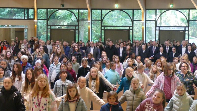 Dass die drei Worte „bewährt – bewegt – unstoppable“ nicht nur ein Motto der Marienschule in Vallendar-Schönstatt sind, sondern ganz praktisch im Alltag wirksam sind, wurde am 2. Oktober bei der Feier zum 80. Jubiläum der Schulgründung (im Jahr 1945) deutlich. Schülerinnen, Lehrerinnen und Lehrer, Vertreterinnen und Vertreter aus Politik und Behörden, Bischof Stephan Ackermann, Trier, Schwester Marisa Spickers, Provinzoberin der Schönstätter Marienschwestern für den Schulträger und viele Gäste konnten ein besonderes Jubiläum feiern.