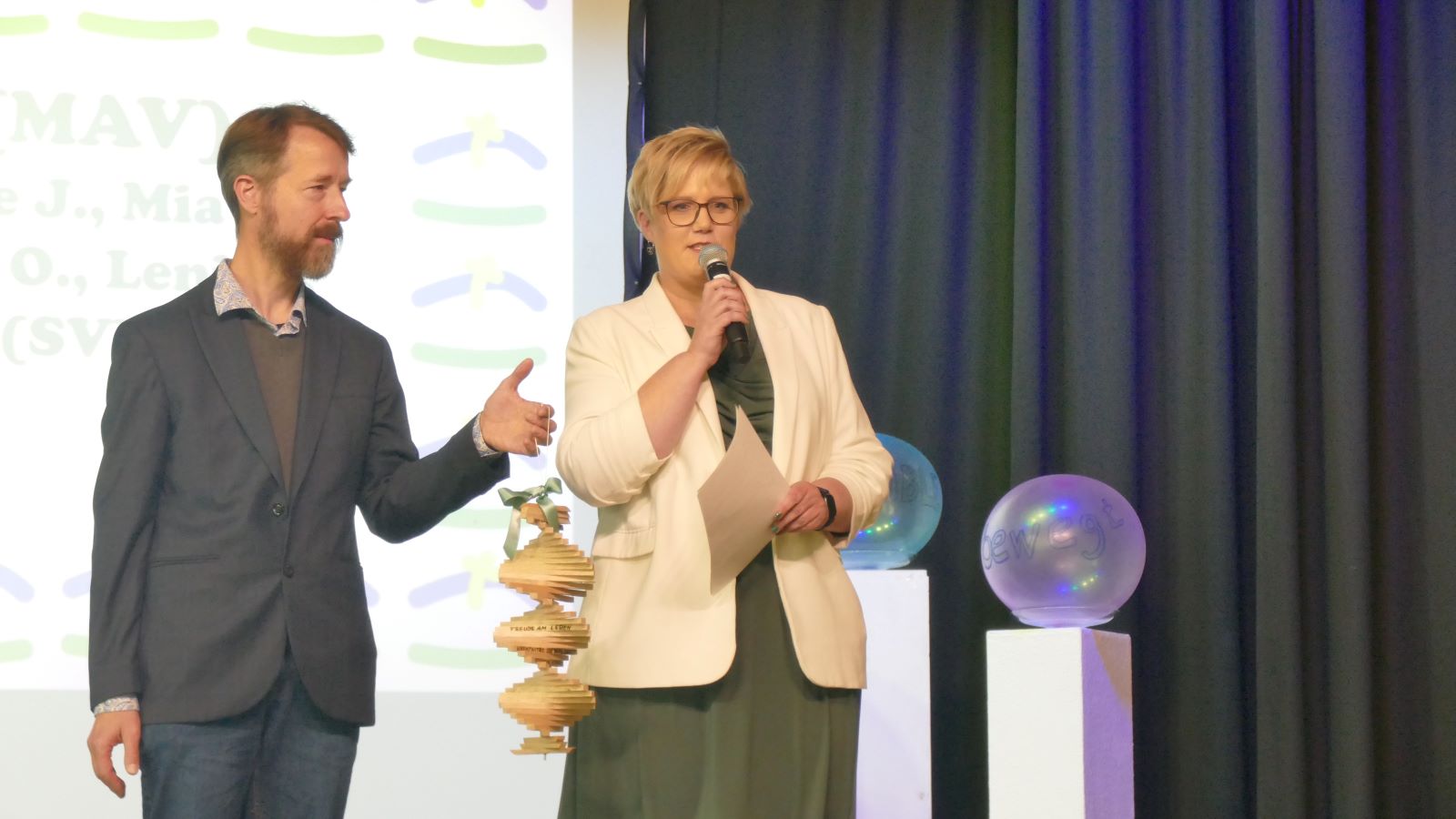 Im Bild eines Windspieles als Spirale entwickelte Frau Böhm als Mitarbeitervertreterin das Bild von „bewährt, bewegt, unstoppable“ und wünschte, die Marienschule möge ein Ort zum Wachsen bleiben, respektvoll in jeder Begegnung.