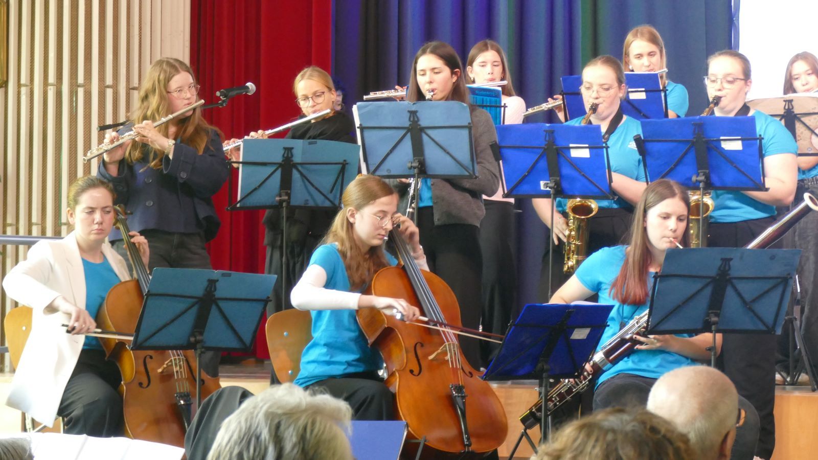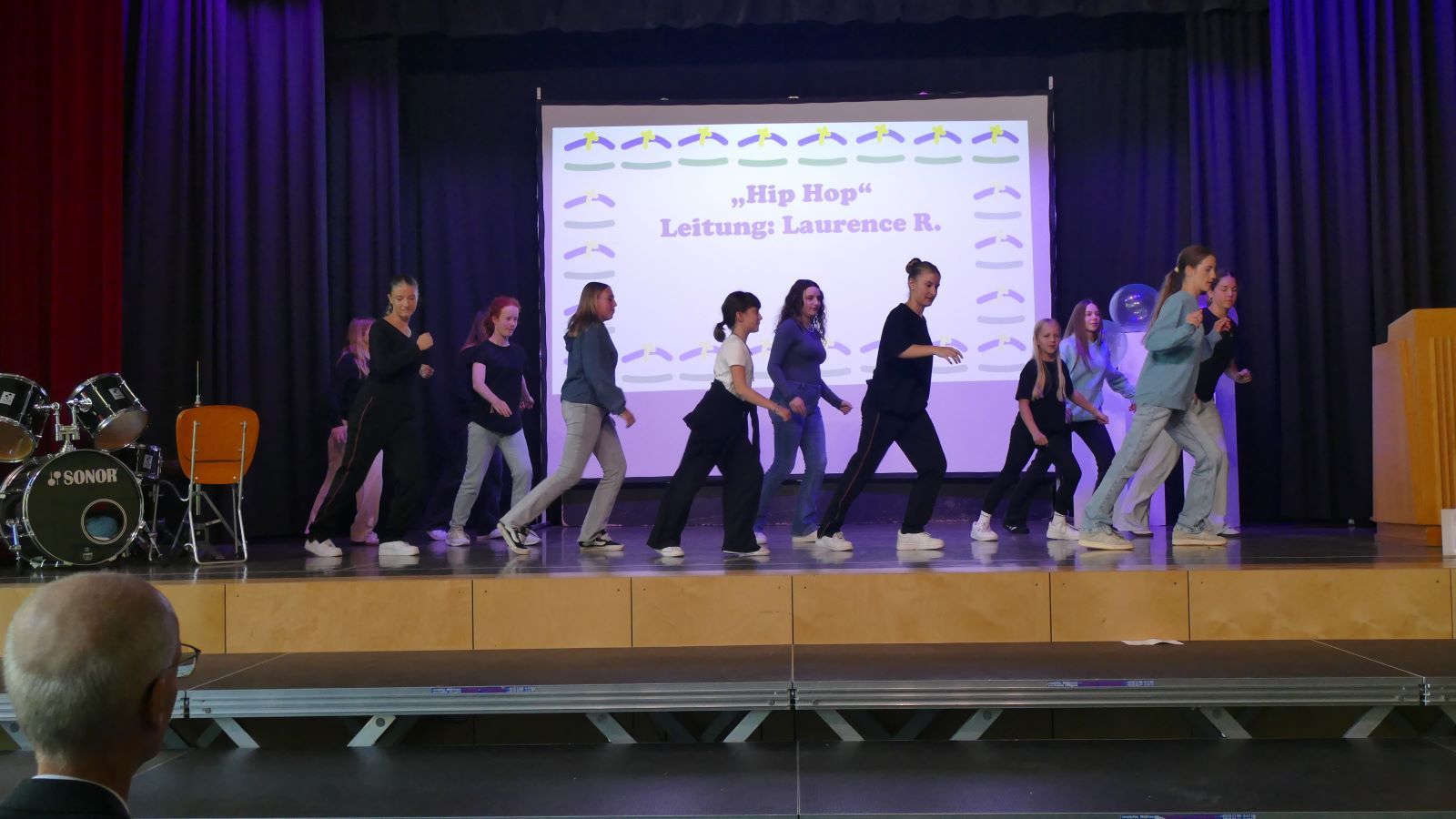 Redebeiträge und Grußworte wechselten sich mit originellen, vielseitigen Beiträgen der Schülerinnen ab, wie zum Beispiel der Schulchor, das Projekt „Tanz macht Schule“, gekonnte Beiträge des Schulorchesters, eine fetzige Tanzreise durch 8 Jahrzehnte und das Können der Projektgruppe „Hip Hop“.