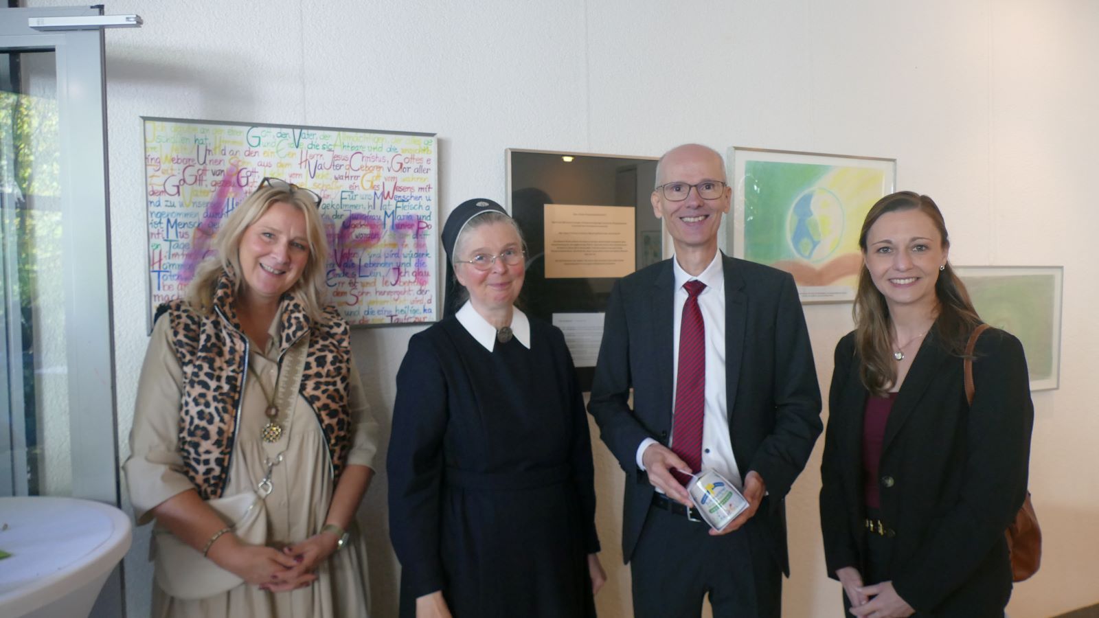 Landrat Marko Boos dankte für die vier starken Säulen, auf der die Marienschule stehe: Fürsorge, Förderung, gelebtes Engagement und Glaube. Ihn beeindrucke, wie selbstverständlich soziales Engagement, das über den eigenen Tellerrand hinausschaue, hier gelebt würde. Als Dank, Mädchen hier stark fürs Leben zu machen und weiteren Ansporn überreichte er eine Urkunde.