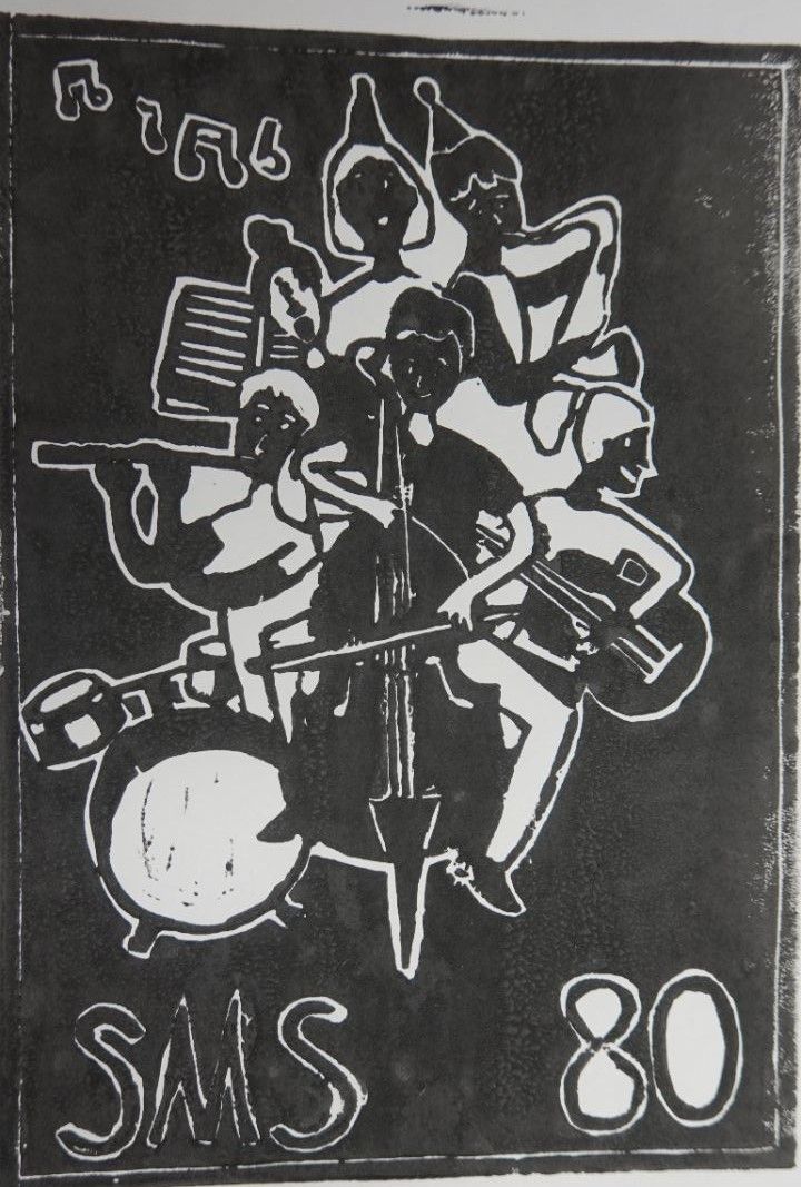 "Diese Linolarbeit von Joy G. zum Thema "Schuljubiläum" entstand im vergangenen Halbjahr. Zur Festwoche "80 Jahre Marienschule" wird das Bild als 'Kunstwerk des Monats' veröffentlicht. Wir gratulieren der Mittelstufenschülerin Joy."