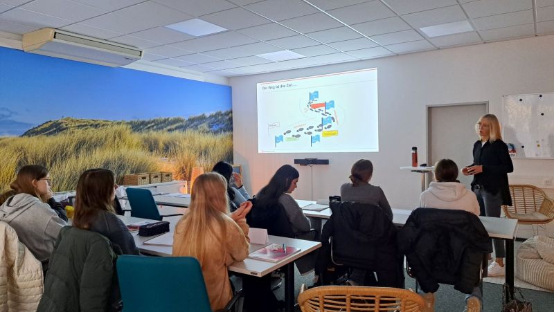 Diese und weitere grundlegende Fragen diskutierte Frau Harwardt von der Agentur für Arbeit mit den Schülerinnen und bot ihnen so einen informativen Überblick über die kommenden Schritte zur Berufsfindung.