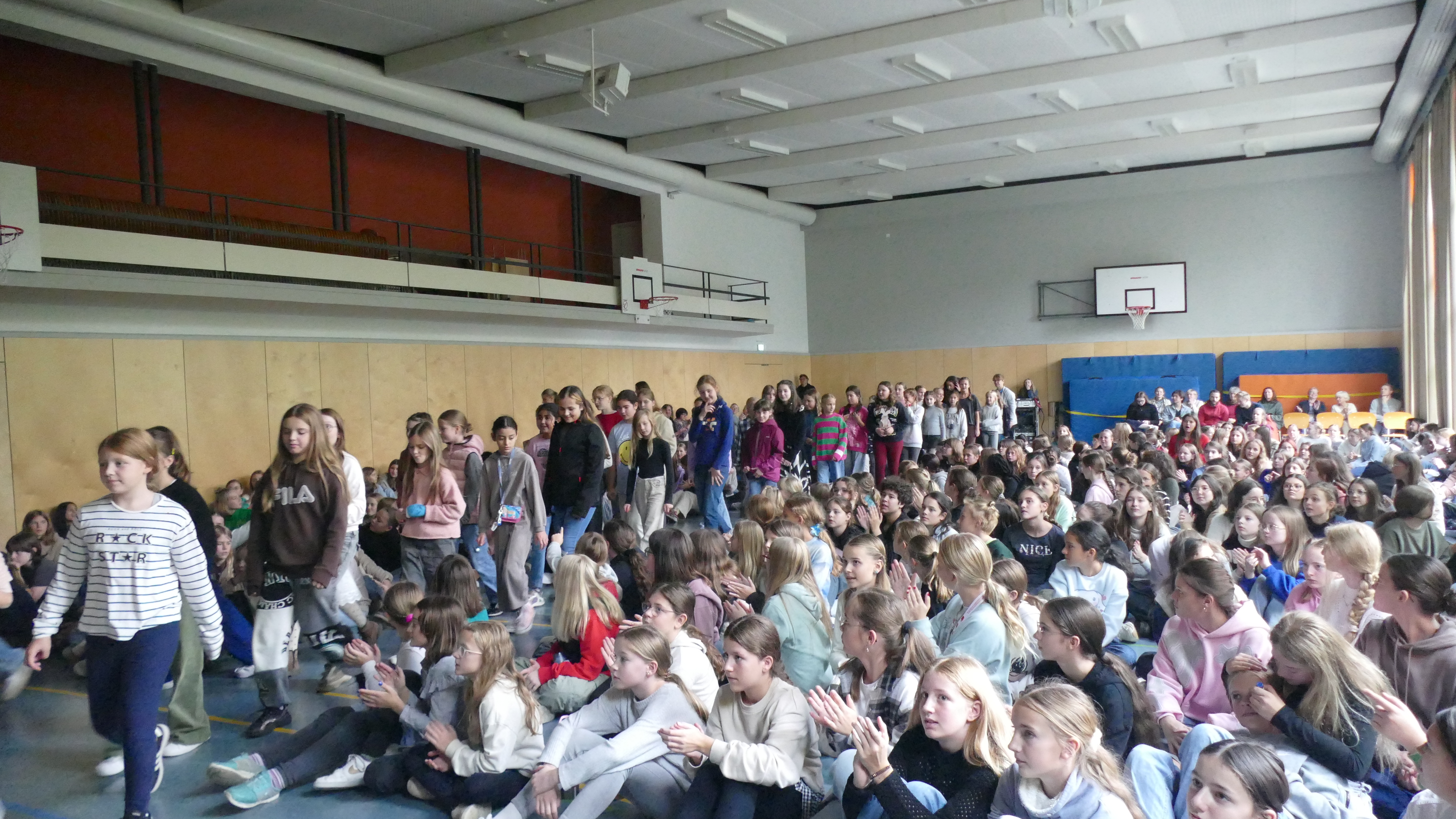 An späten Vormittag machten sich die Schülerinnen der Jahrgangsstufen 5-8 auf den Weg in die Aula und genossen dort das Bühnenprogramm, während „die Großen“ den Schulgeburtstag in ihre Klassen- und Kursgemeinschaft ausklingen ließen.