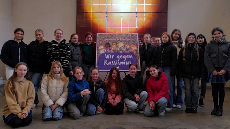 Die Schülerinnen der Klasse 7c haben am 17.03.2025 die Ausstellung “Wir gegen Rassismus” in der Pallottikirche besucht, die dort anlässlich der diesjährigen internationalen Wochen gegen Rassismus noch bis zum 23. März zu sehen ist.