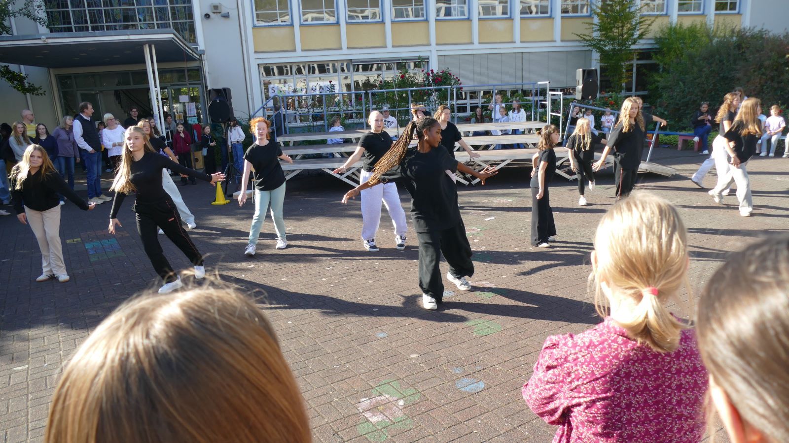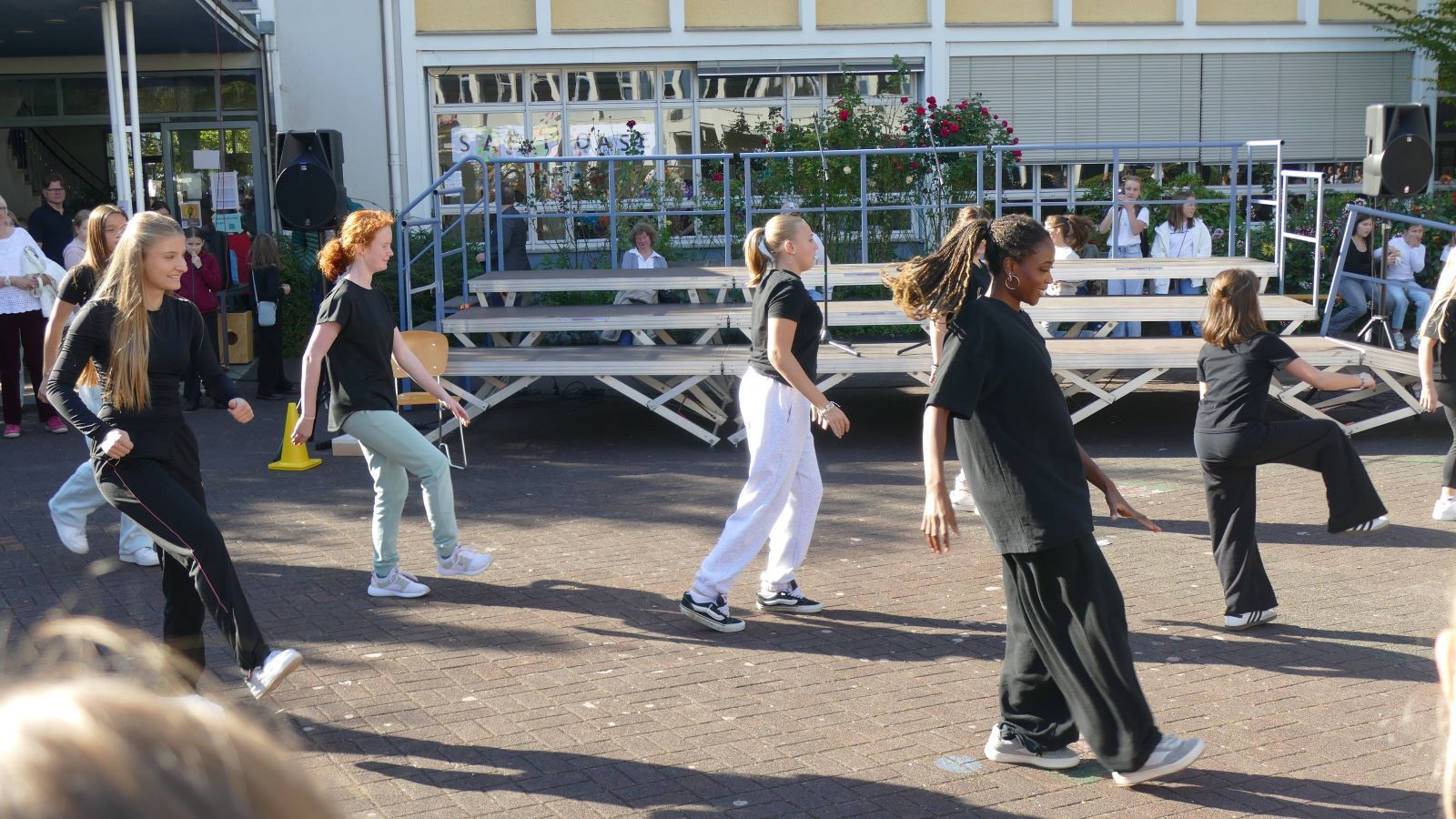 Den ganzen Nachmittag über bis 18 Uhr konnte man immer wieder Darbietungen von Projektgruppen auf der Bühne sehen, z.B. Hip-Hop, Clipdancing, Jazz-, Modern-, Streetdancing und Gardetanz. In den Klassen- und Fachräumen der SMS gab es Ausstellungen, Workshops und Präsentationen zu dem, was an den Projekttagen alles auf die Beine gestellt worden ist.