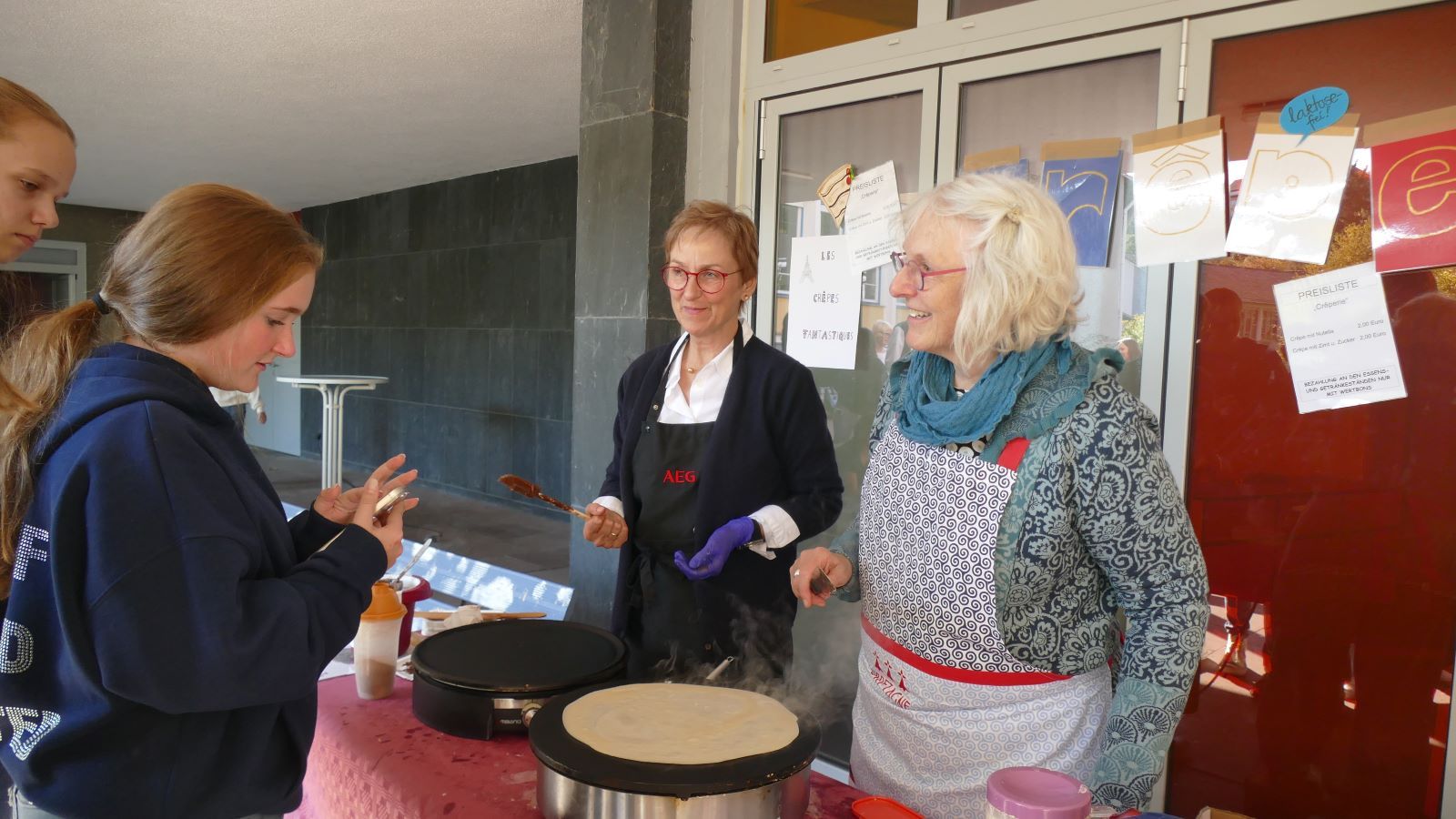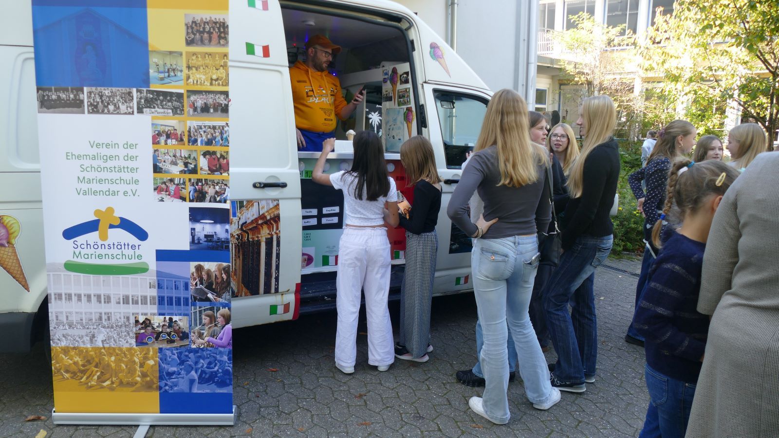 Großen Zulauf fand auch die Gastronomie. Besondere Aufmerksamkeit zogen zwei Eiswagen auf sich, nicht zuletzt deswegen, weil der Ehemaligenverein der SMS allen Schülerinnen und Lehrkräften ein Eis spendiert hatte. Bei geradezu sommerlichen Temperaturen hieß es da „cool bleiben“.