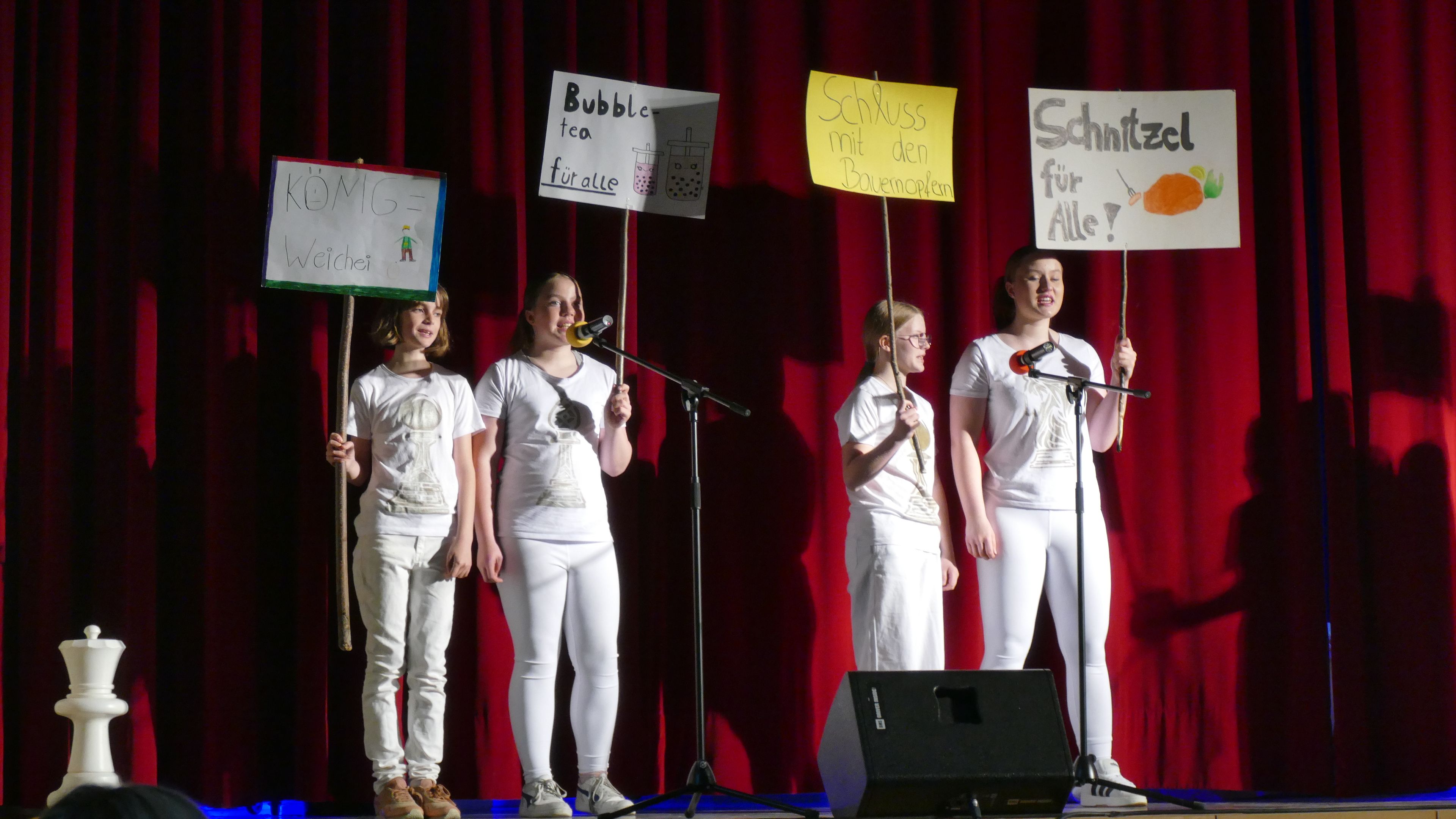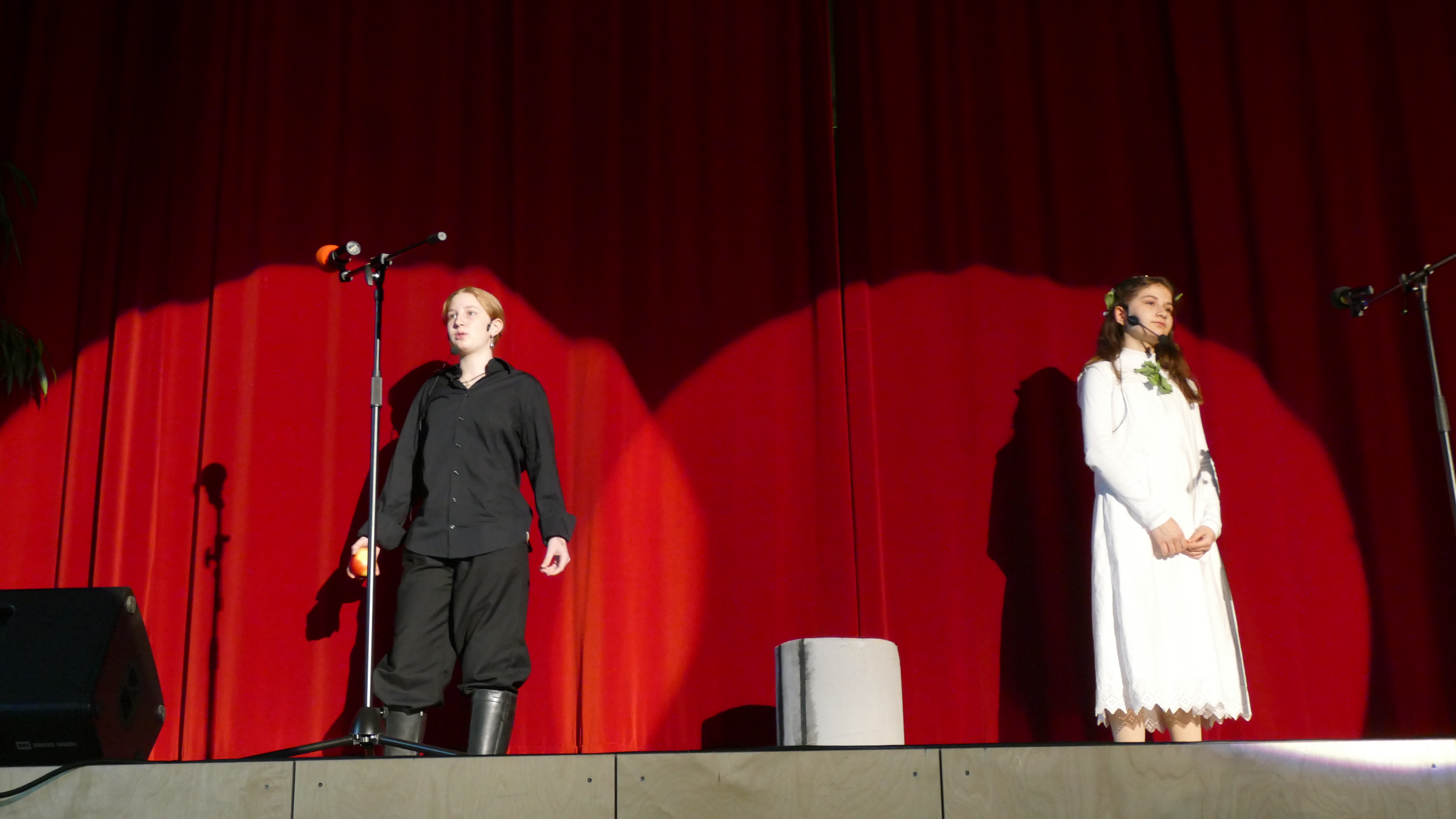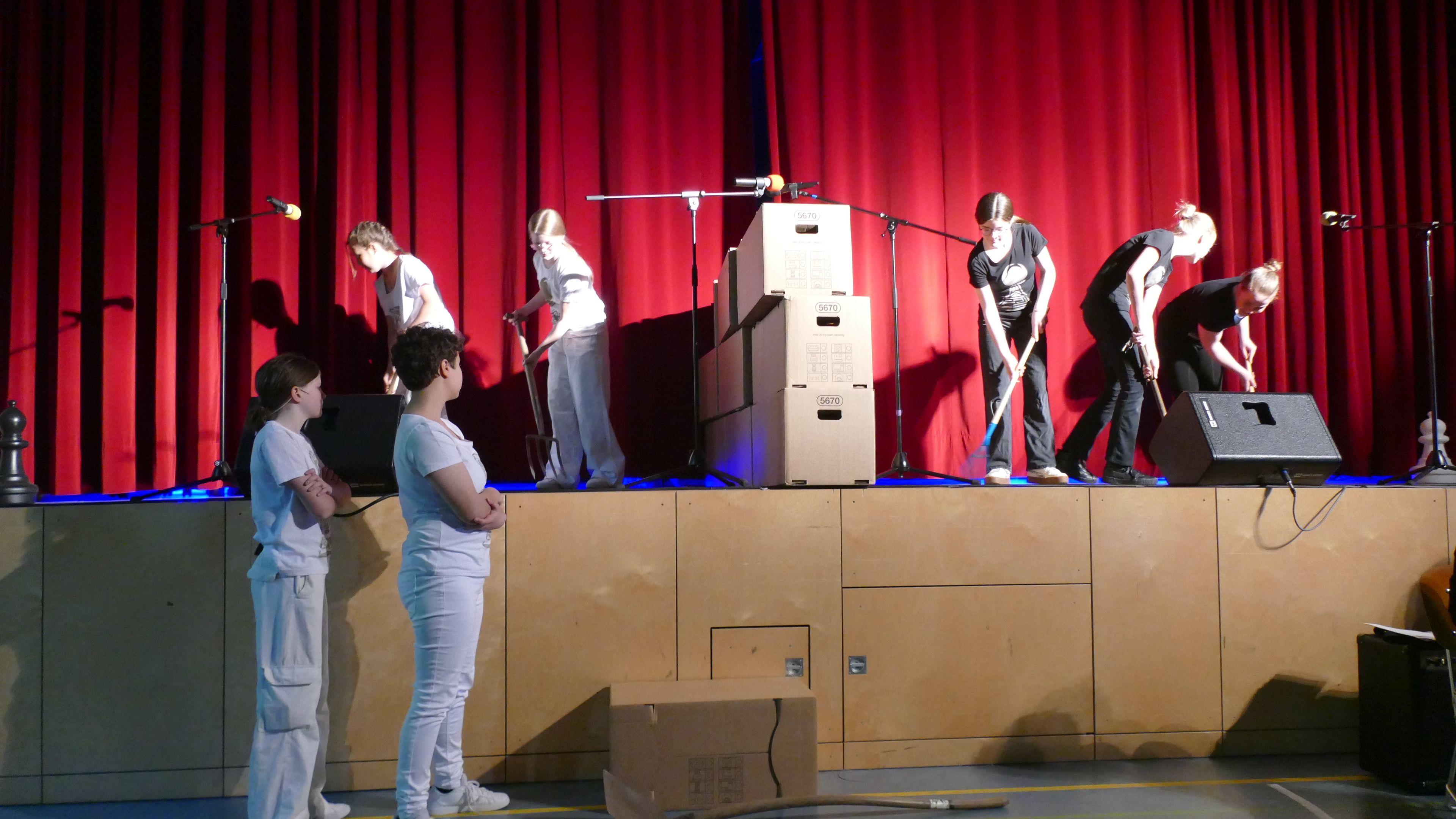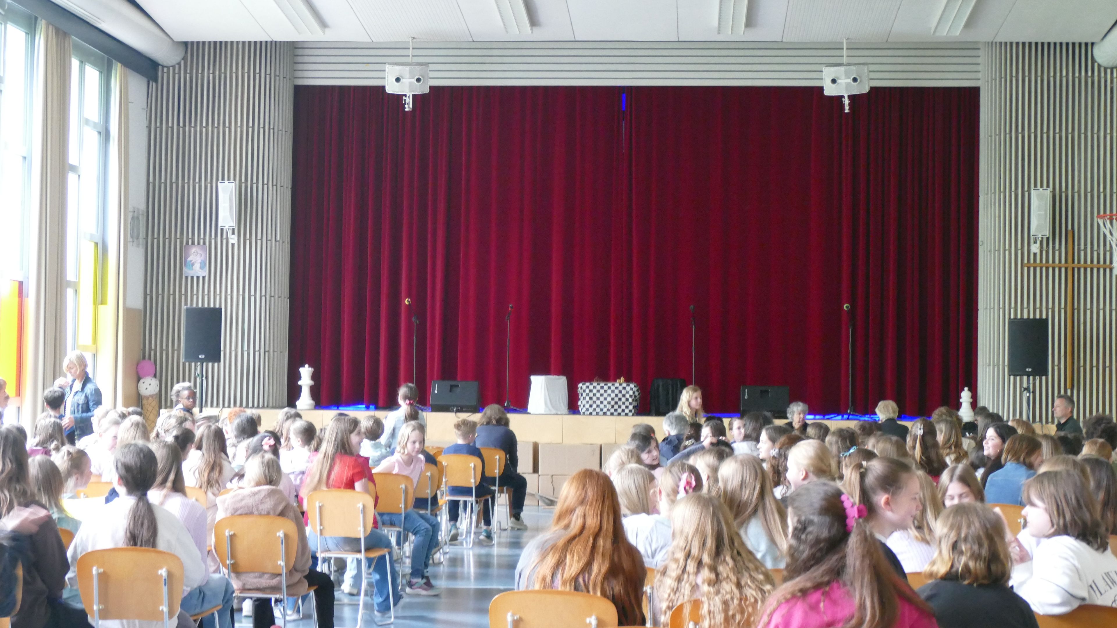 Viele Grundschul-Kinder füllten in der Woche darauf die Reihen in der Aula der SMS und staunten nicht schlecht, wie talentiert und selbstbewusst die Marienschul-Schülerinnen auf der Bühne agierten.