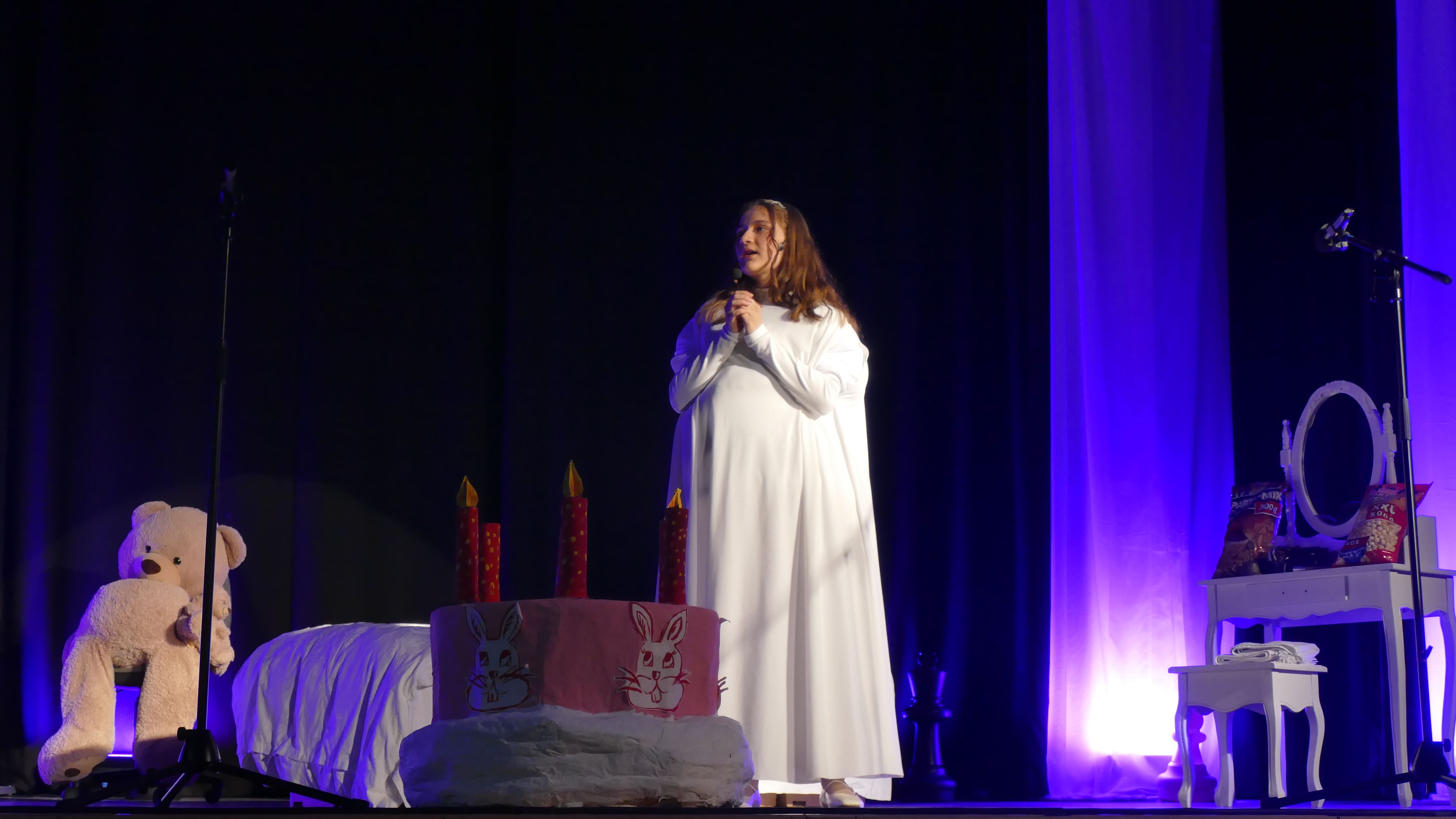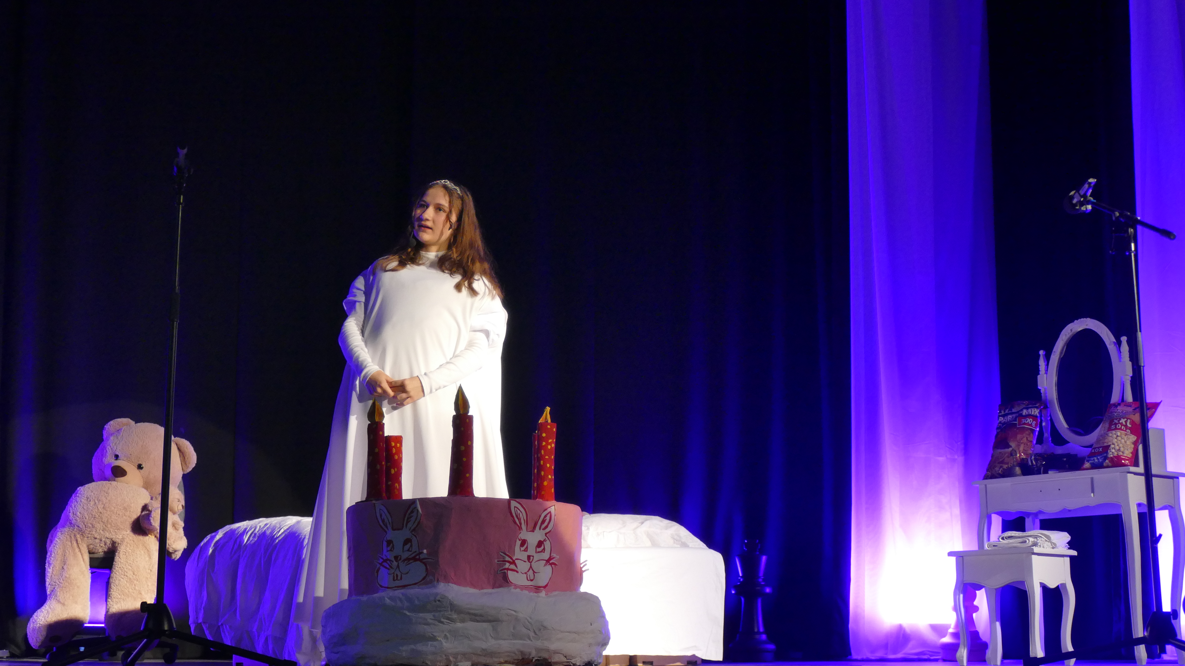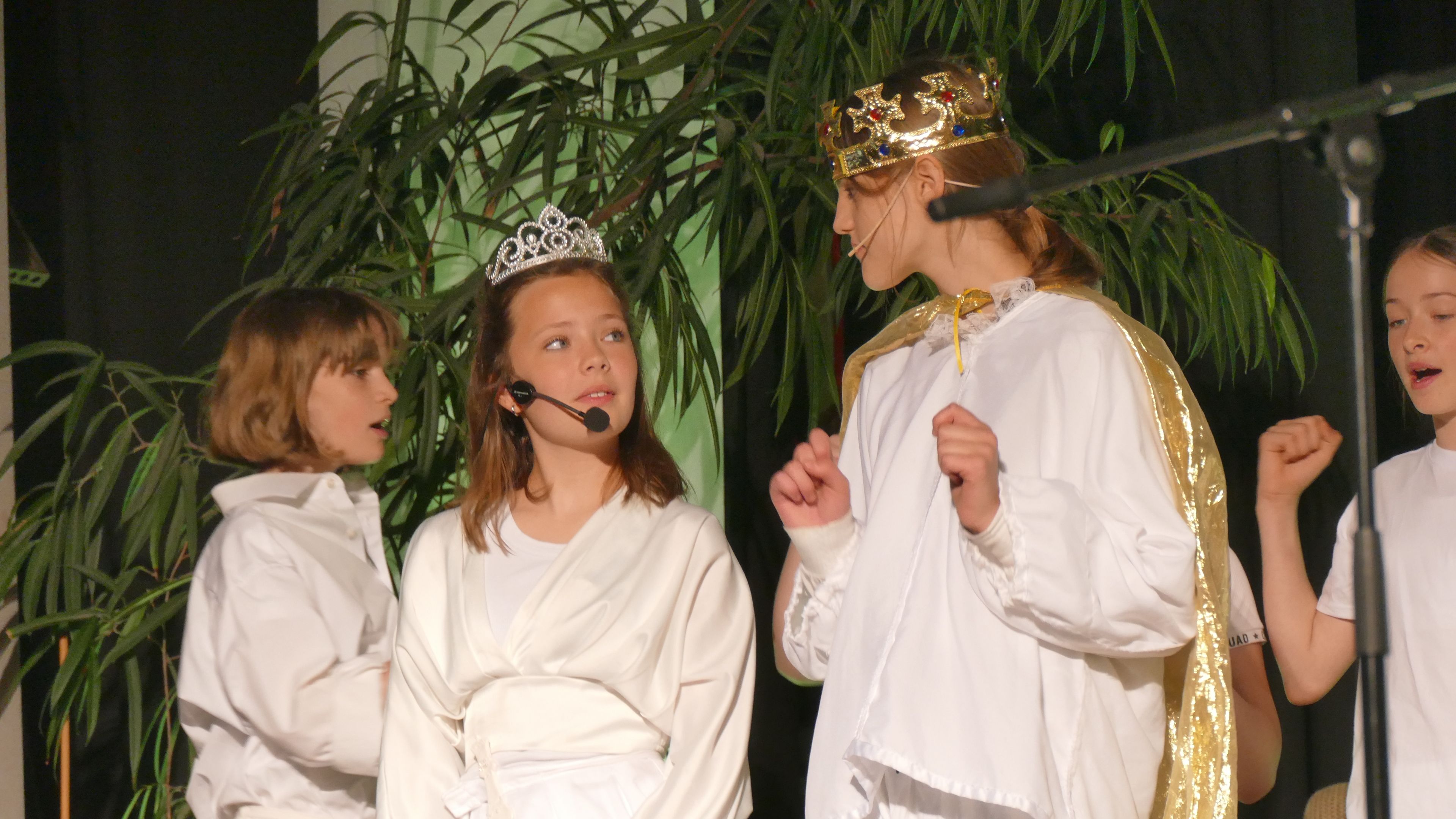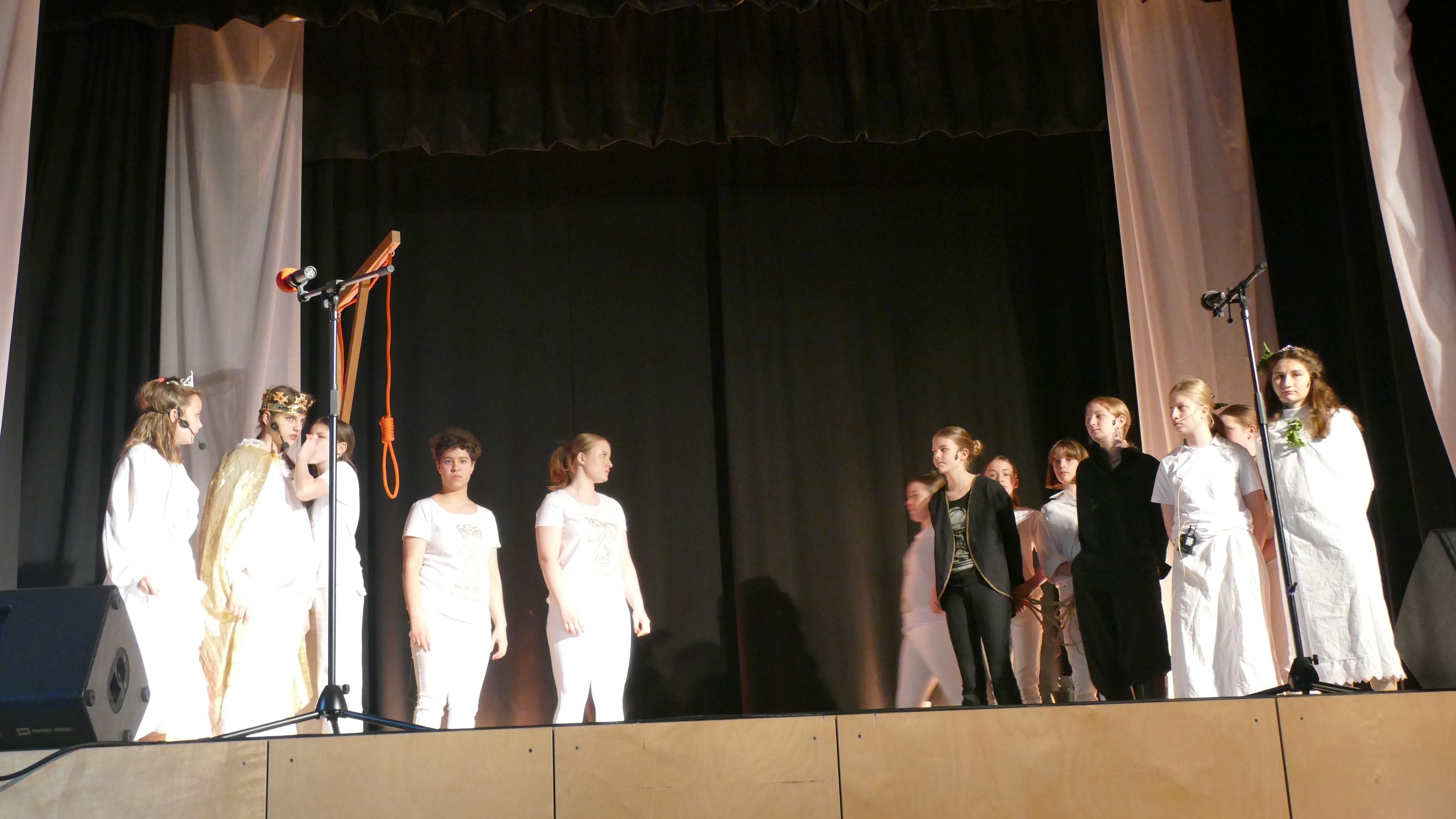 Viele Grundschul-Kinder füllten in der Woche darauf die Reihen in der Aula der SMS und staunten nicht schlecht, wie talentiert und selbstbewusst die Marienschul-Schülerinnen auf der Bühne agierten.