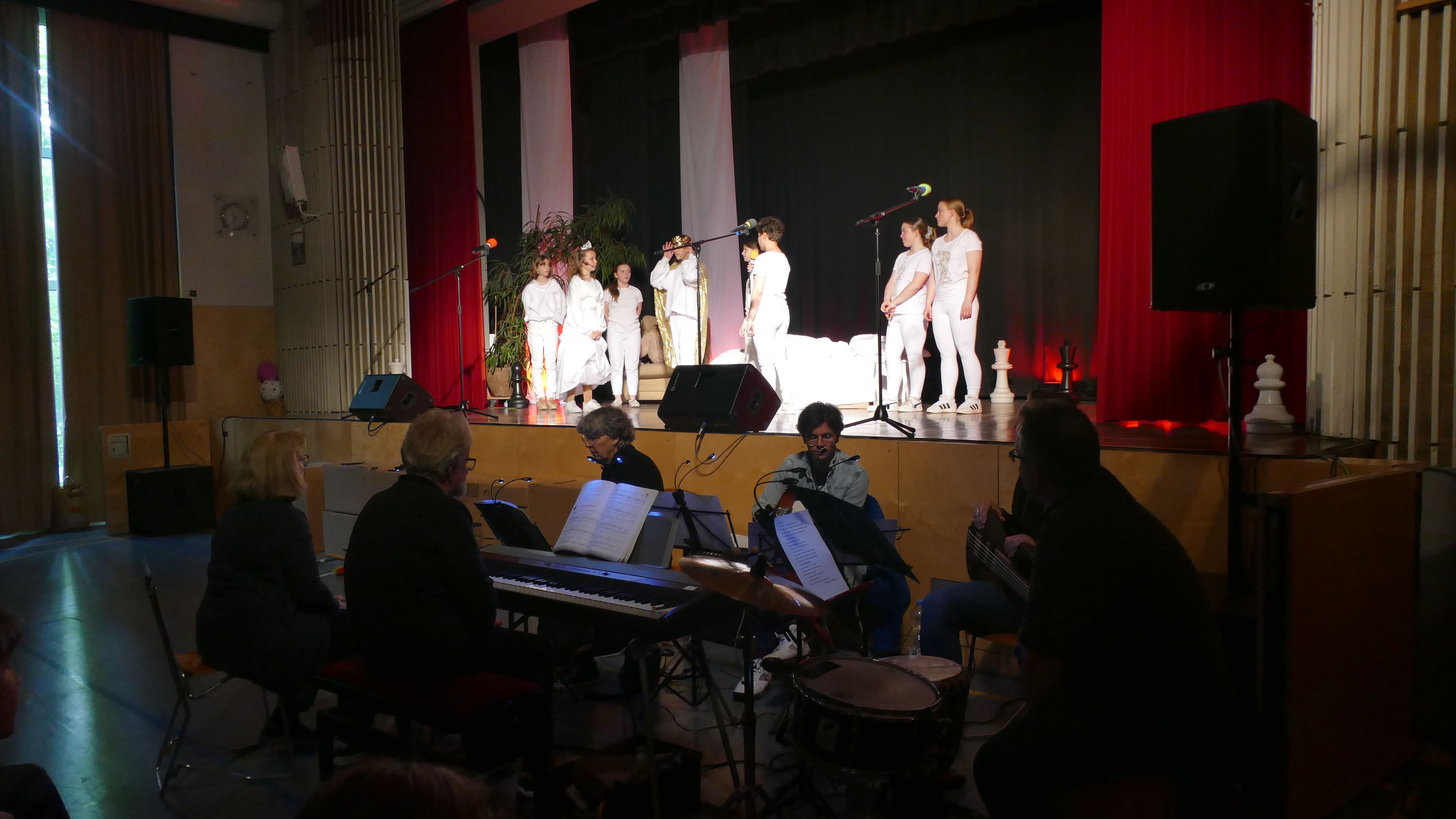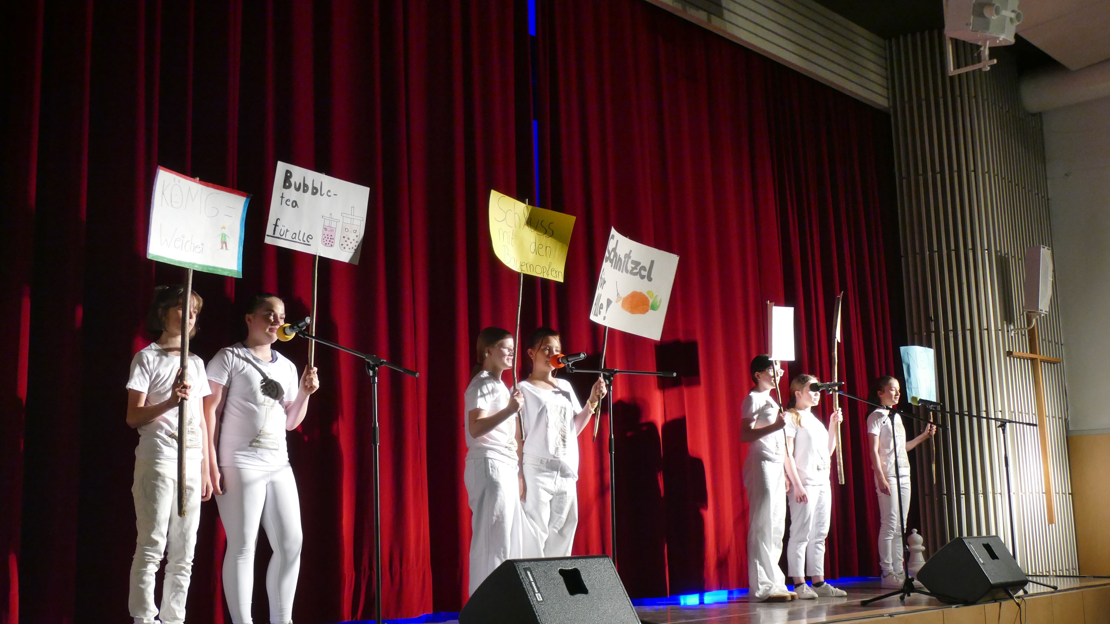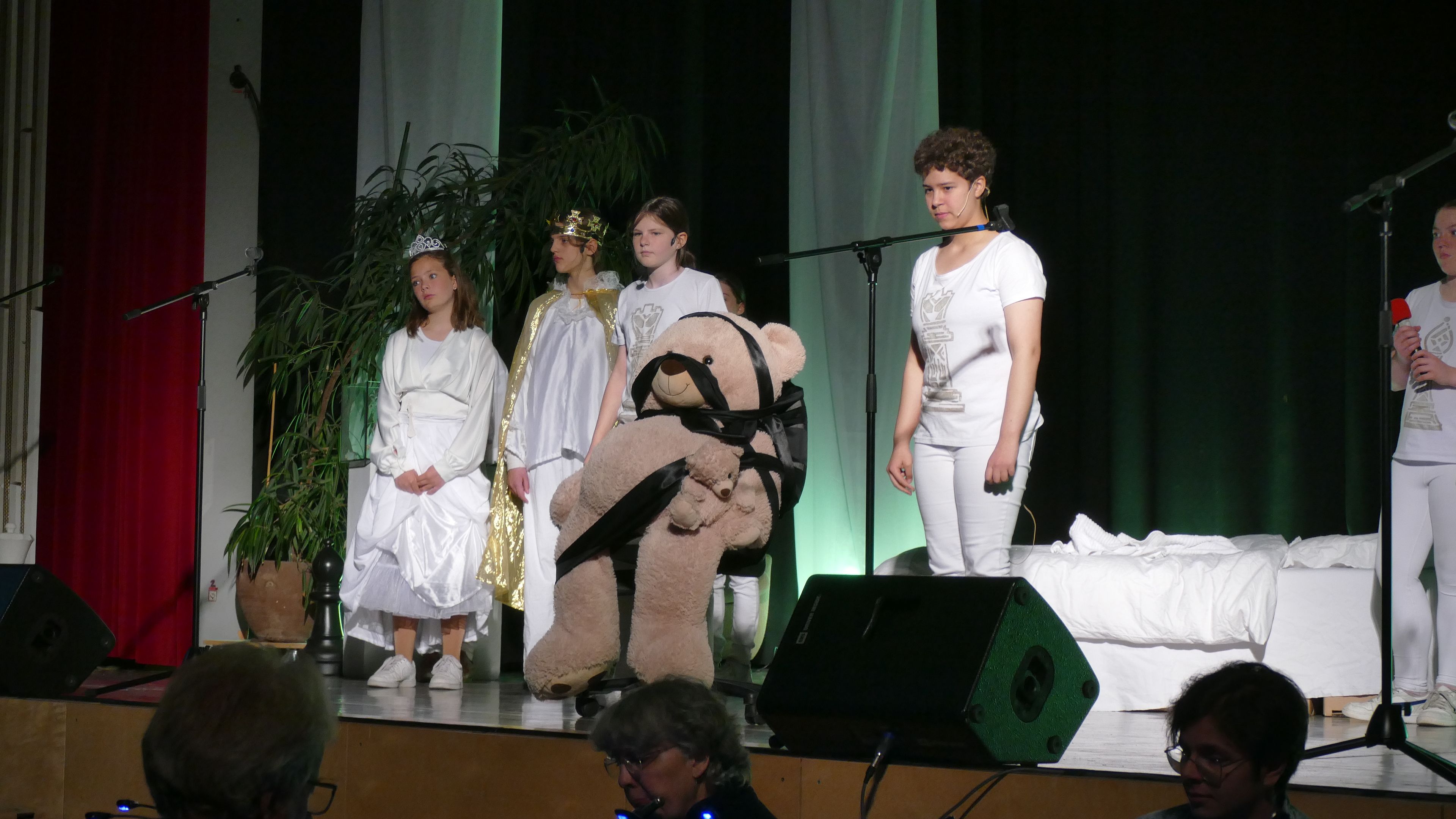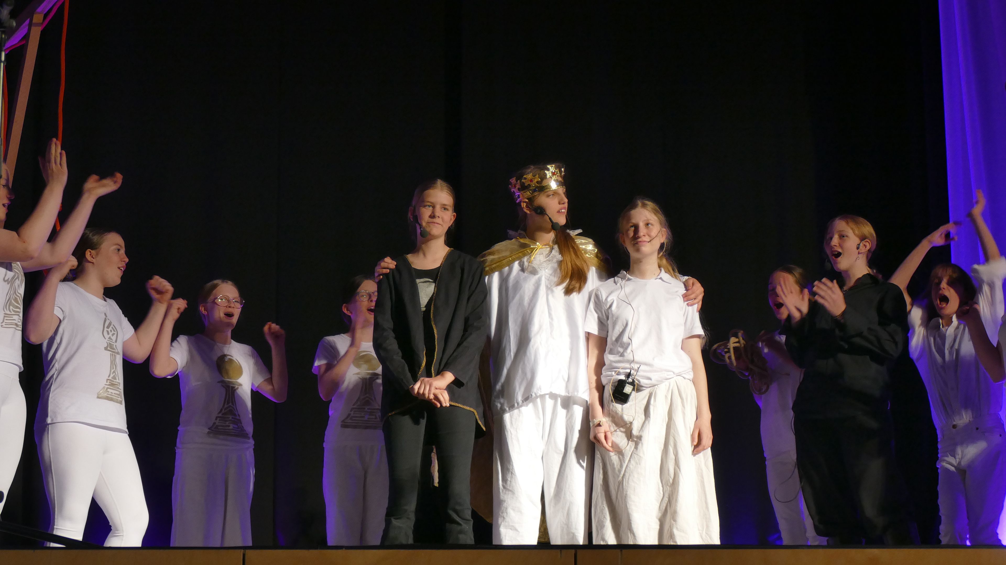 Die Musical-Darbieterinnen der SMS haben diese Figuren sowie das Figurenensemble brillant ausgespielt und sangeskräftig die Botschaft mit Happy end über die Bühnenrampe gebracht.