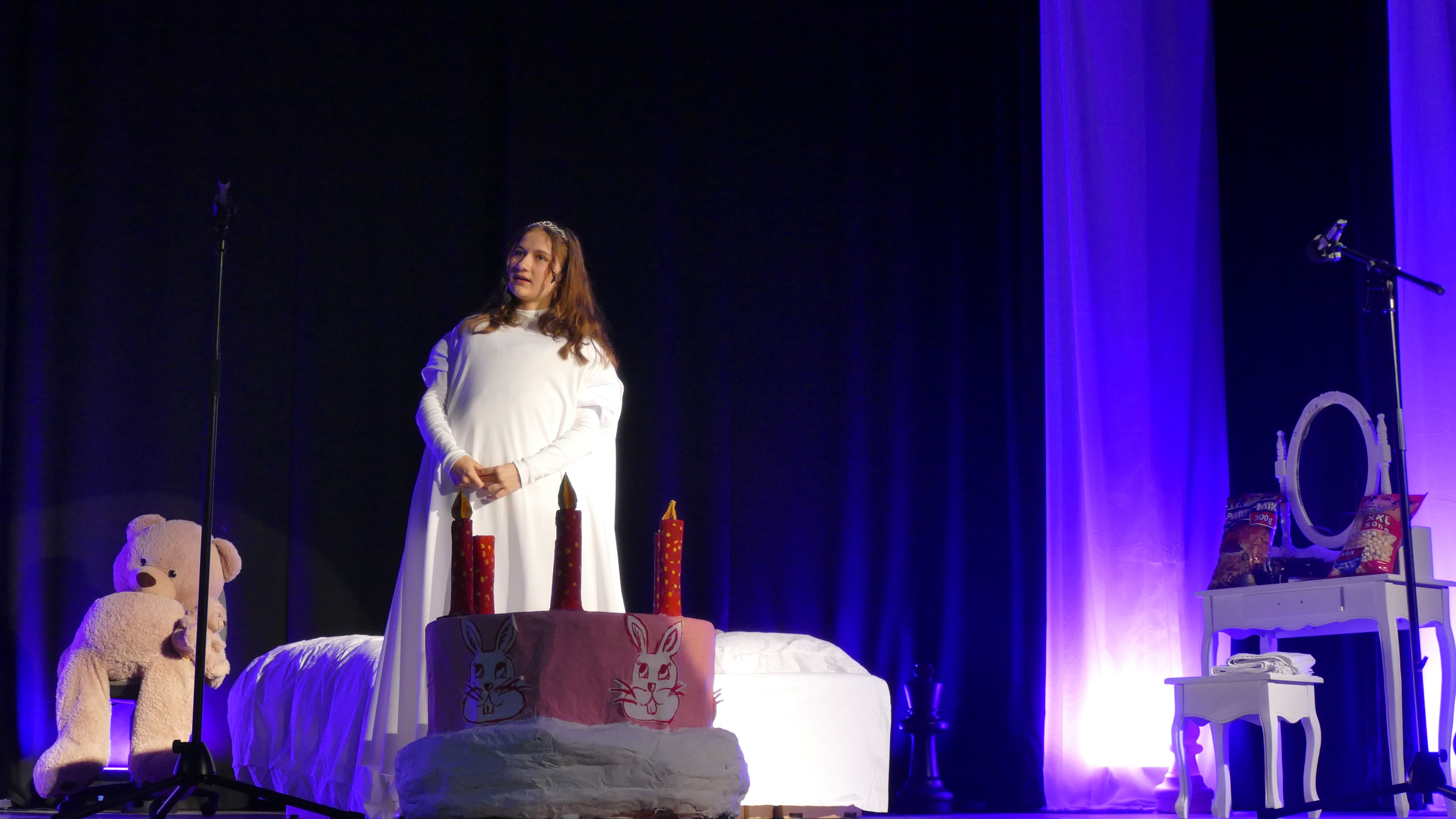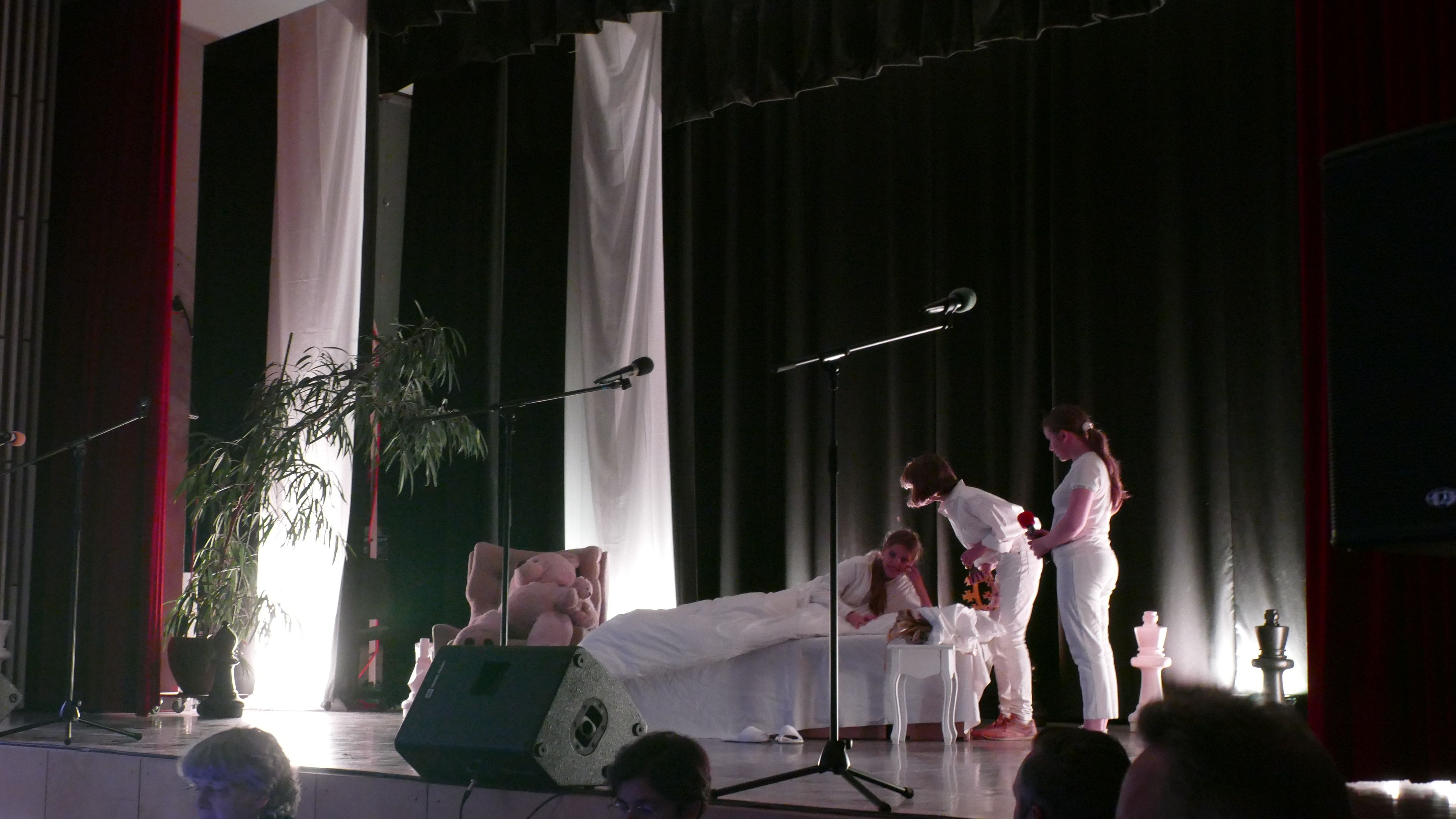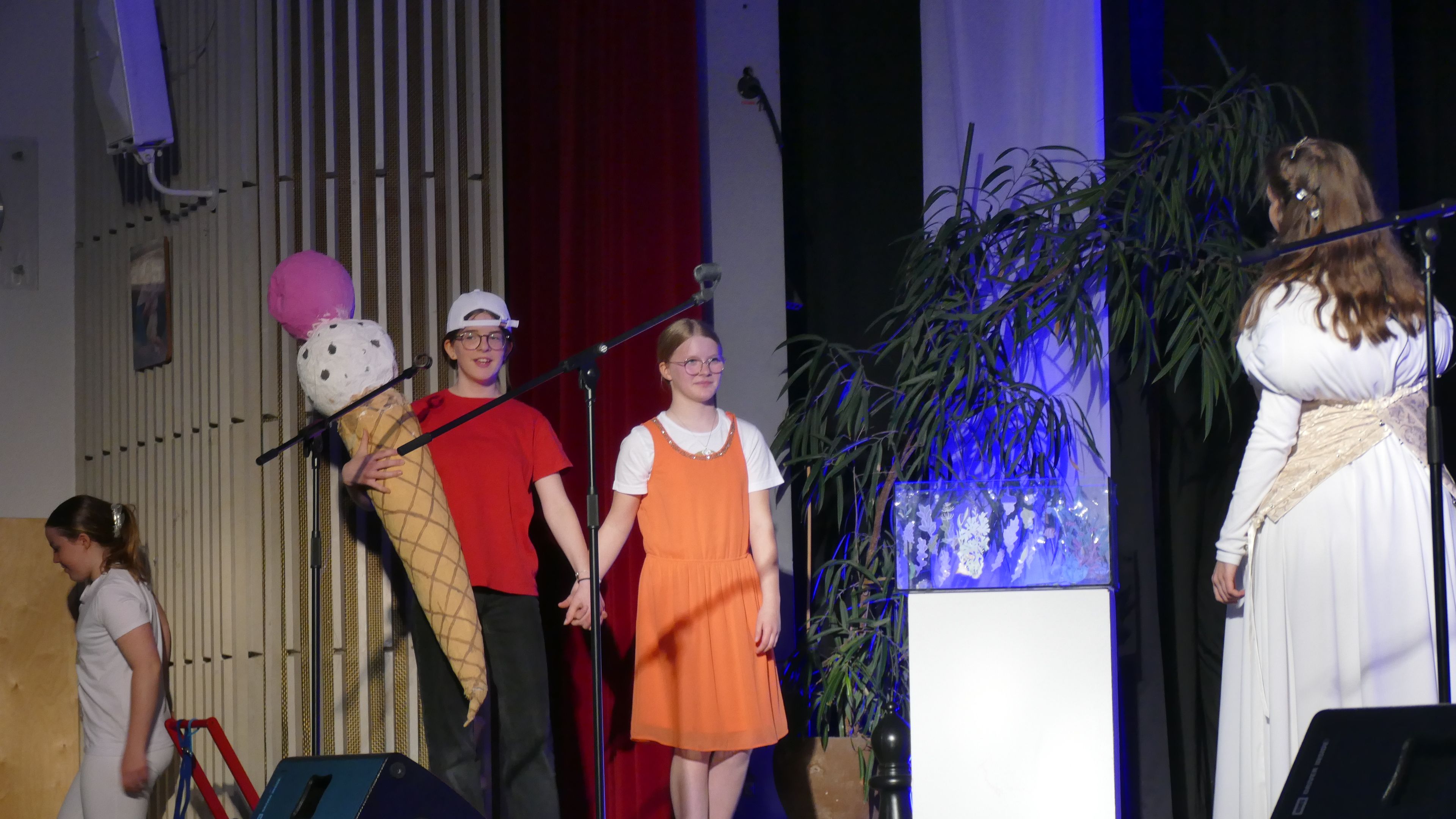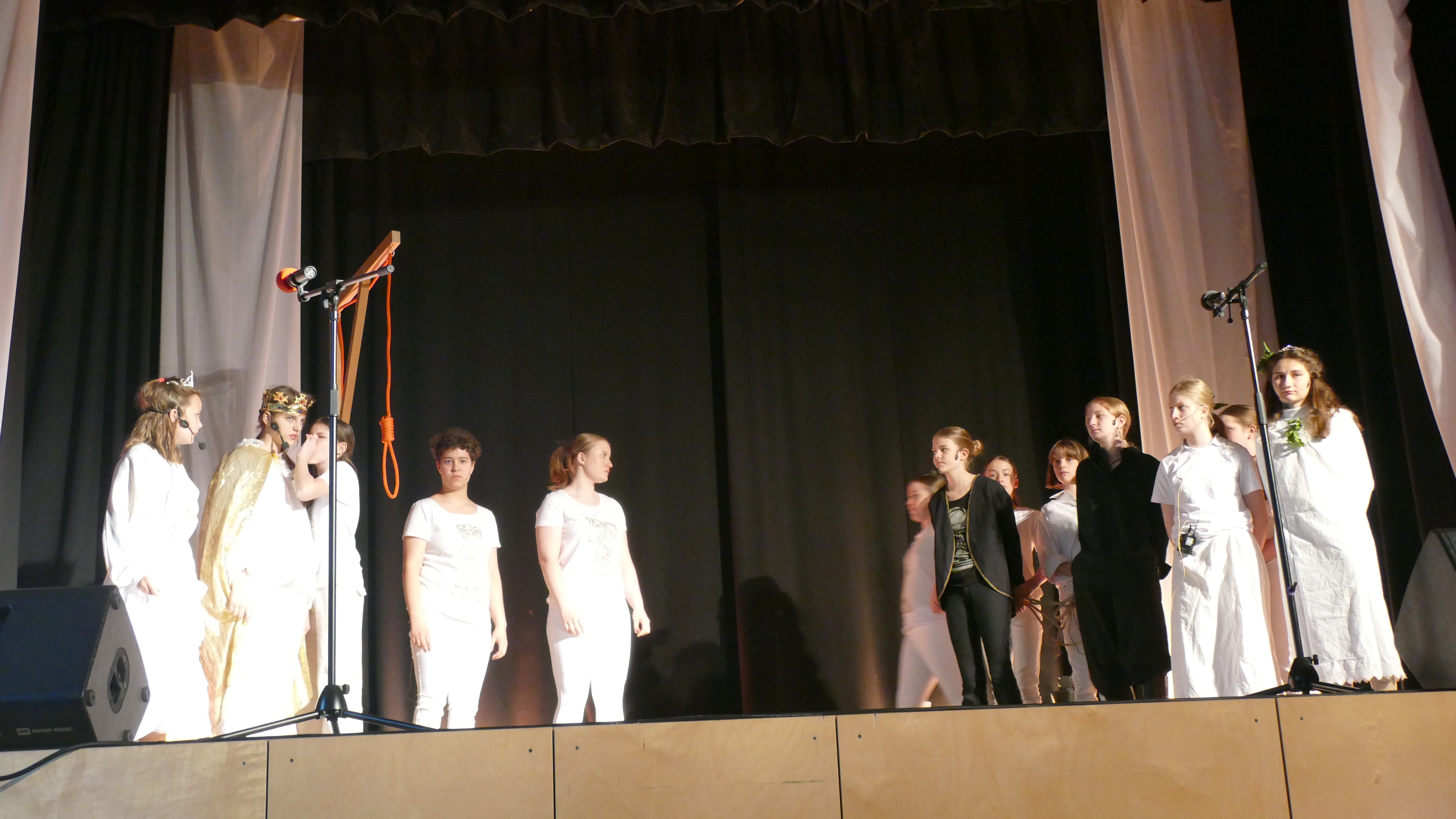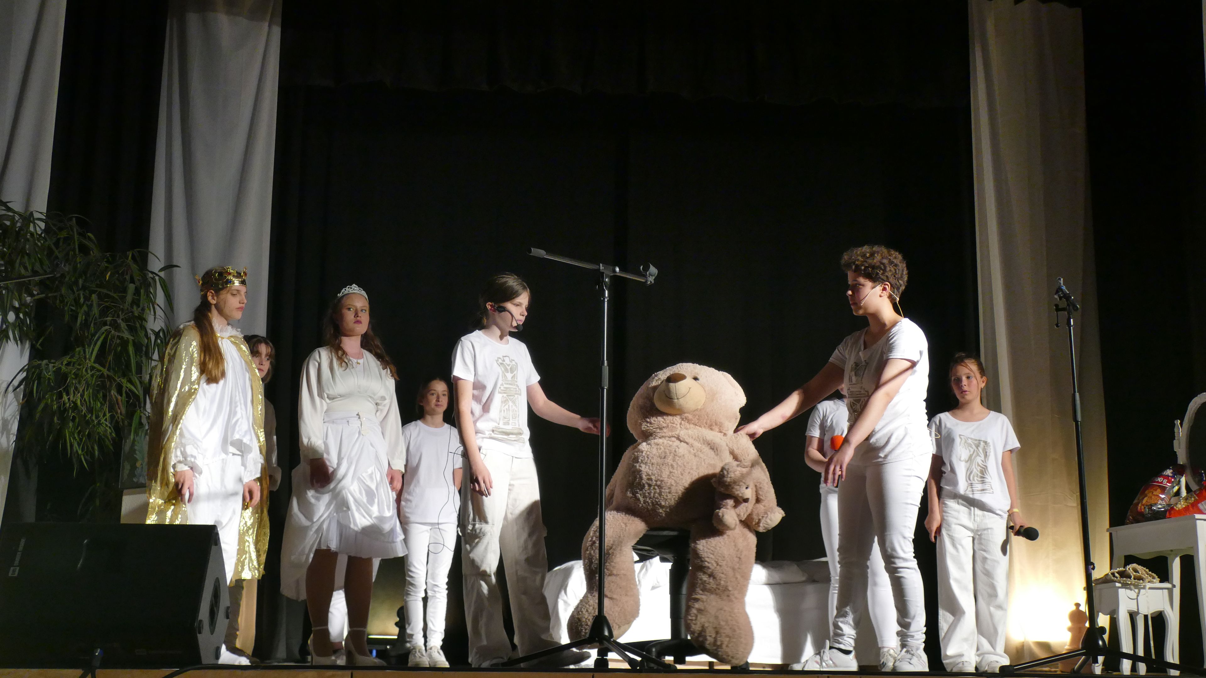 Die Musical-Darbieterinnen der SMS haben diese Figuren sowie das Figurenensemble brillant ausgespielt und sangeskräftig die Botschaft mit Happy end über die Bühnenrampe gebracht.