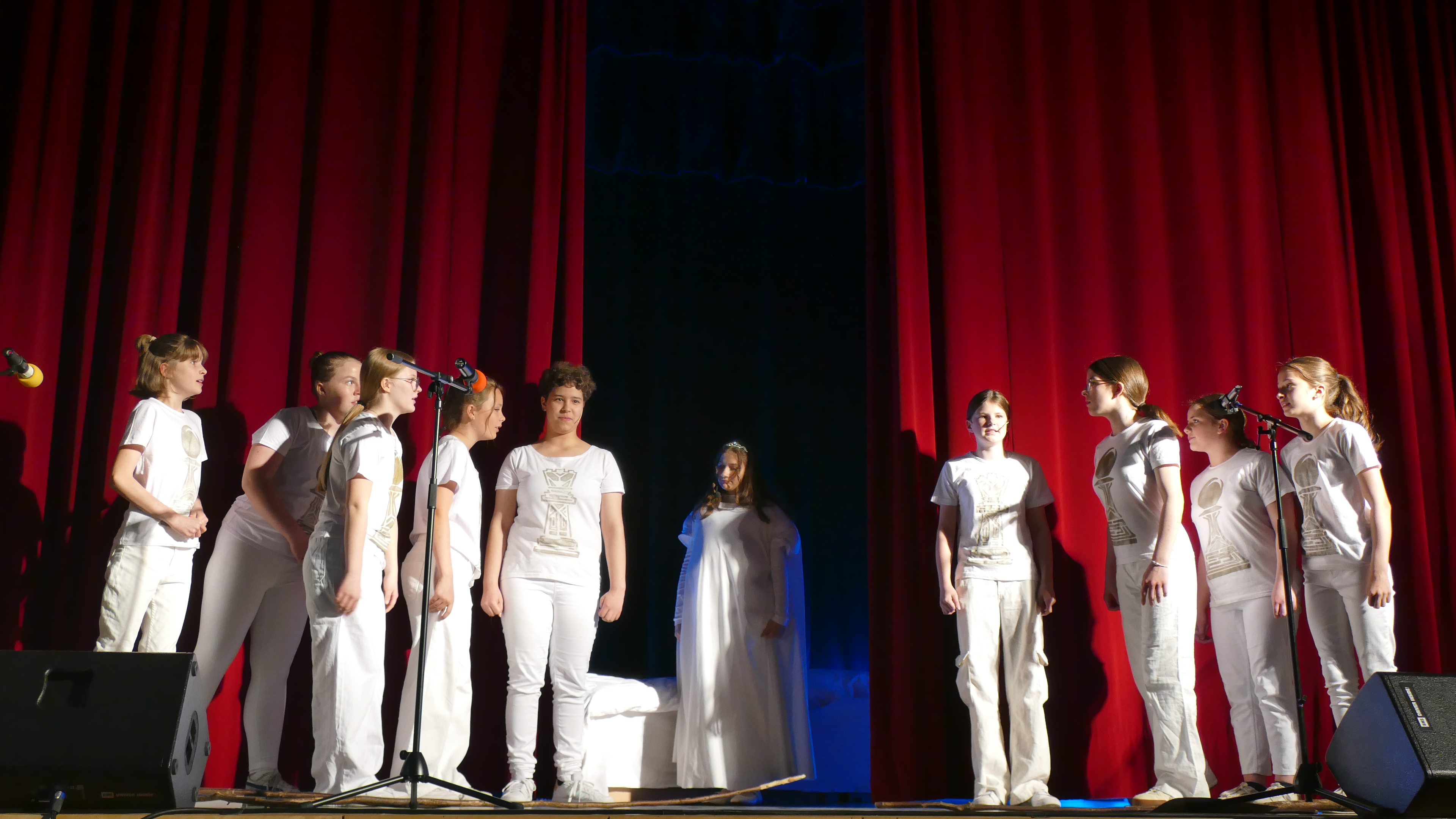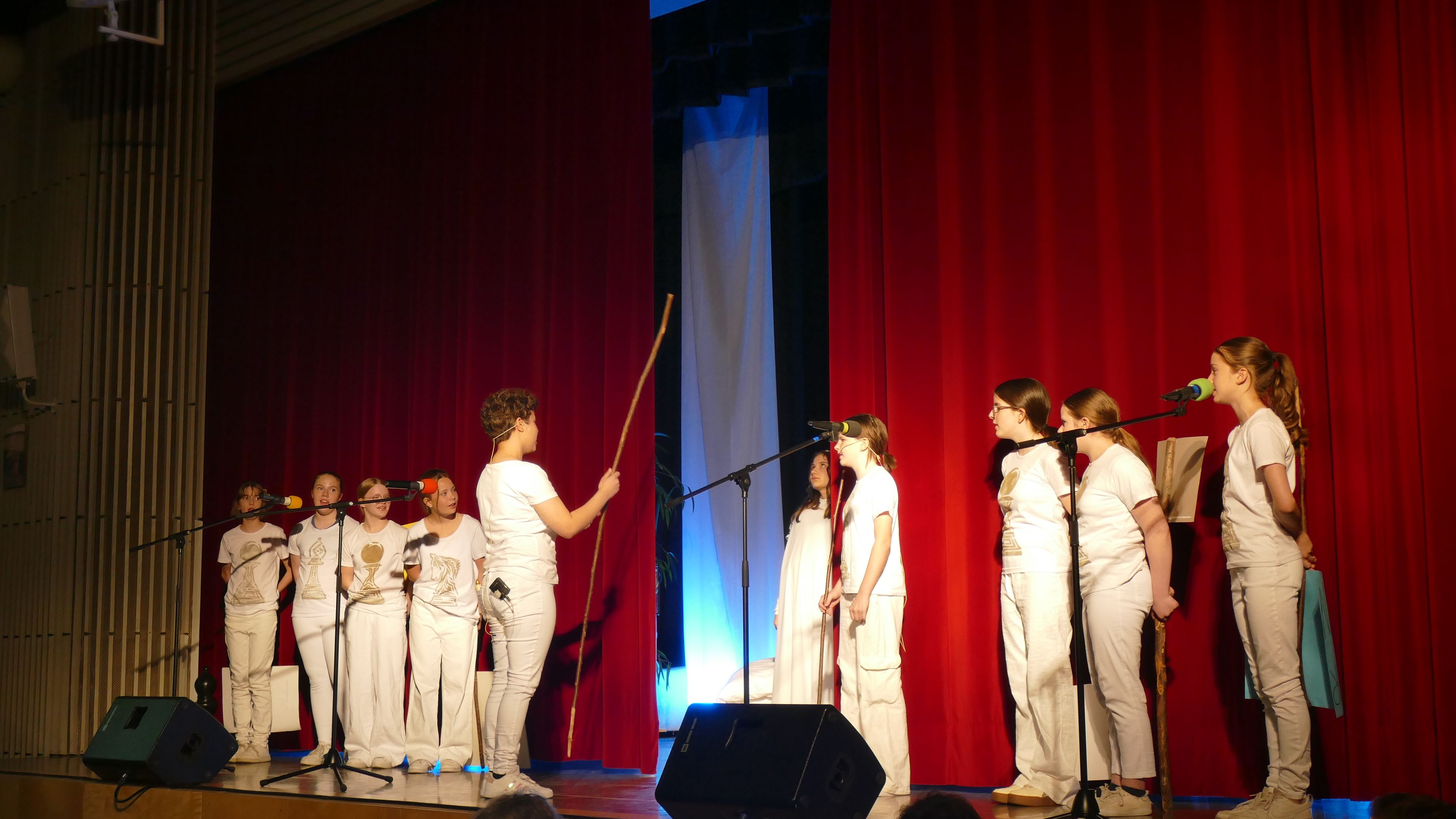 Am späten Nachmittag des 25.05.2025 war die Aula brechend voll. Sehr viele wollten sich diesen musikalischen Hochgenuss mit Livemusik und toller Ton- und Lichttechnik nicht entgehen lassen. Die Besetzung der Rollen sowie die Hinweise auf den Inhalt des Musicals versprachen einen spielerisch-kunstvollen und kurzweiligen Abend: