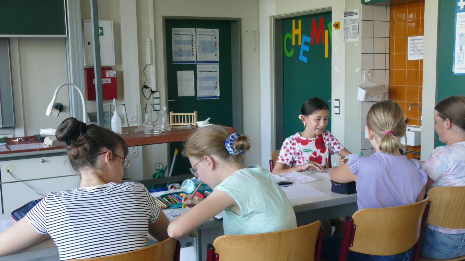 Die Schülerinnen vertieften am sogenannten "Labortag" nicht nur ihr Fachwissen, sondern fanden als Lerngruppe und Klassengemeinschaft noch näher zusammen. Es ist schön am Ende des sechsstündigen "Labortages" feststellen zu können: Da stimmt die Chemie!