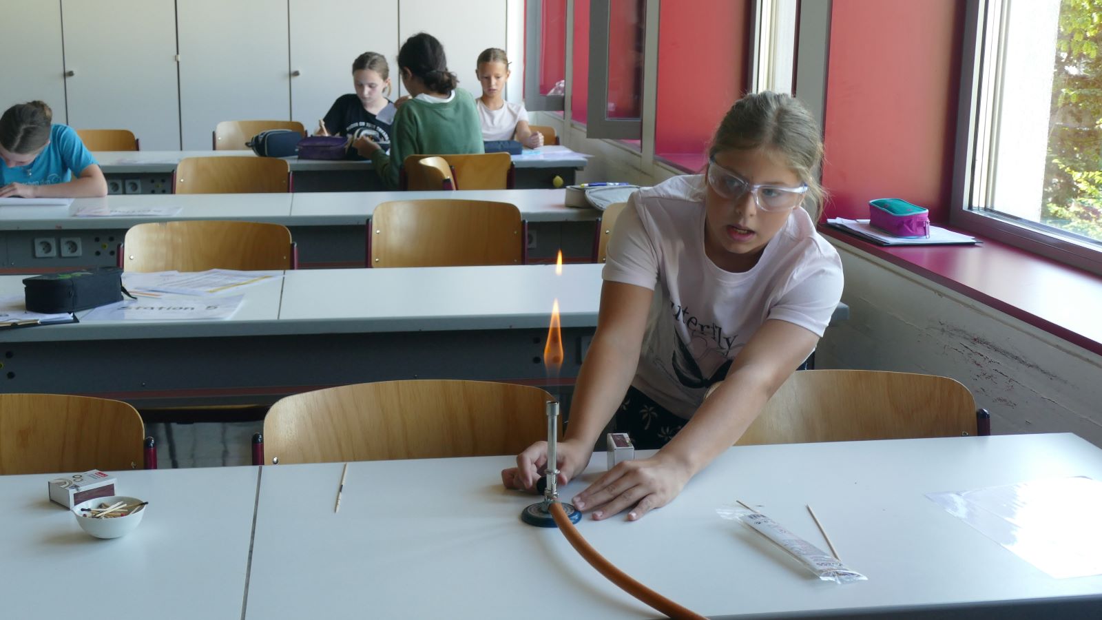 Am 27.08.2025 erhielten die Schülerinnen der 6d unter der Leitung von Frau Dr. Derenthal eine Einführung in die Laborsicherheit. Sie lernten verschiedene Laborgeräte kennen, erarbeitetn sich Regeln zum sicheren Experimentieren und lernten theoretisch und praktisch den Umgang mit dem Brenner. Außerdem lernten sie Gefahrenstoffsymbole von Chemikalien in ihrer Bedeutung.