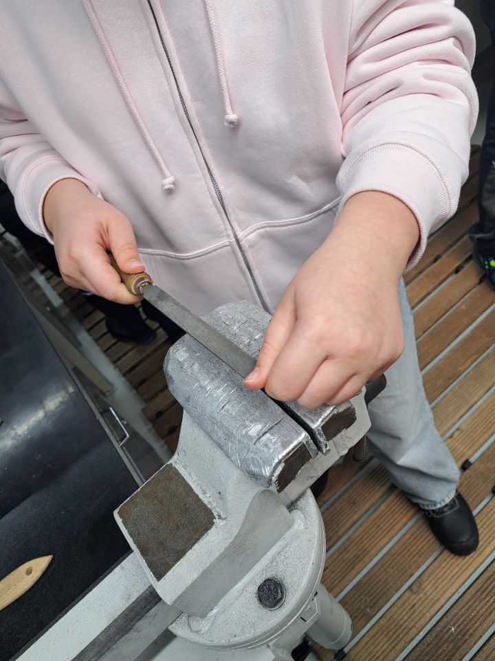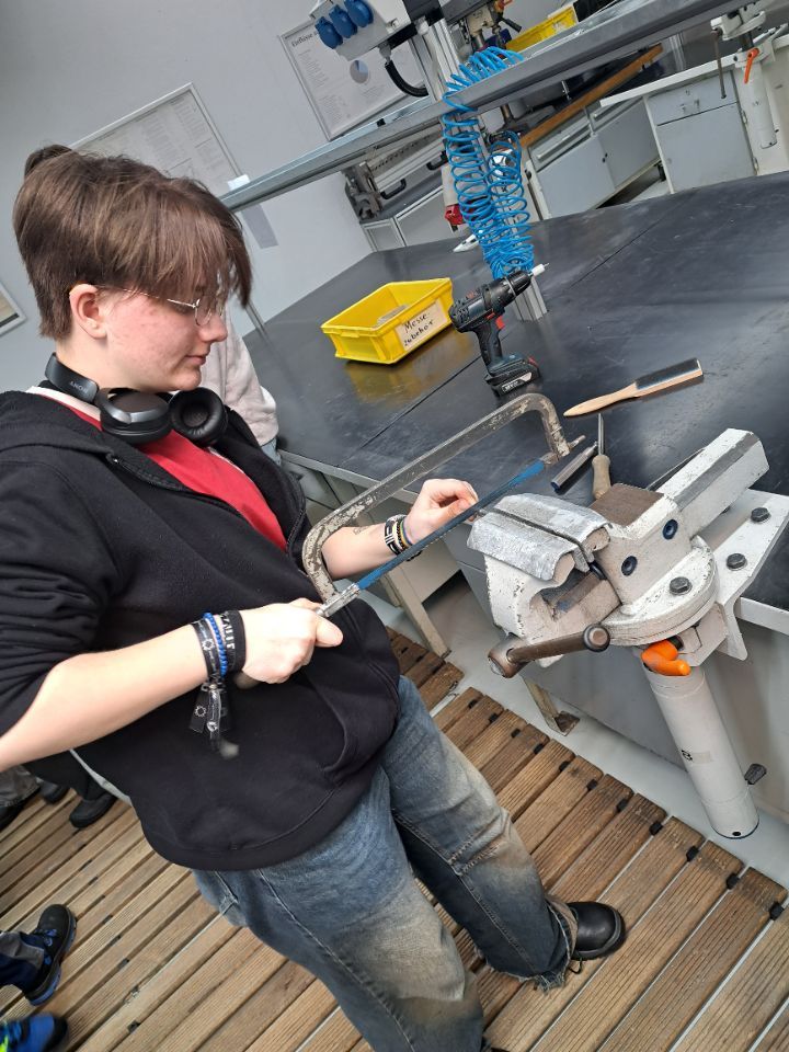 Vor Ort wurde den Schülerinnen neben einer Information zu Ausbildungsmöglichkeiten bei Stabilus auch ein Rundgang in der Fabrikationshalle angeboten. Am Ende der Veranstaltung durfte jede Schülerin unter Anleitung eines Azubis an einem Ausbildungswerkstattplatz mit firmeneigenen Werkzeugen einen Schlüsselanhängen gestalten (sägen, feilen, bohren).