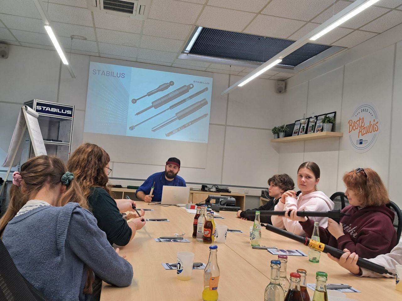 Im Rahmen der Berufsorientierungswoche (BOW) in den Klassen 8a und 8b bot sich für eine Gruppe von Schülerinnen u.a. die Gelegenheit, einen Schnuppertag bei der Firma Stabilus in Koblenz zu erleben. Die Firma Stabilus ist eine weltweit führende Firma zur Herstellung von Gasfedern, Dämpfer und elektromechanische Antrieben.