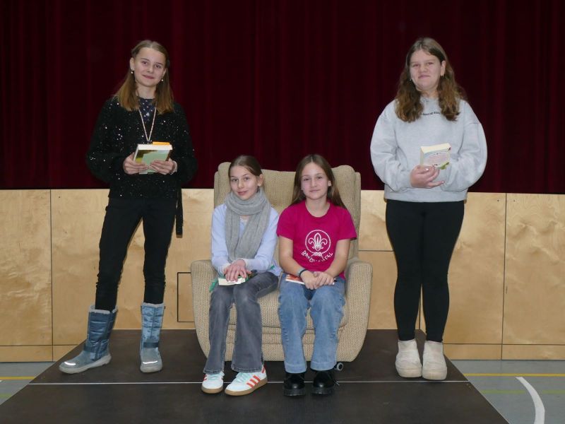 Alle vier Vorleserinnen haben diese Aufgabe gut gemeistert. Darin waren sich die Zuhörerinnen und die Jury einig. Am Ende standen die Schulsiegerinnen fest. Mit einer Durchsage wurden ihre Namen auch der ganzen Schulgemeinschaft verkündet. Wir gratulieren Isabel Th. aus der 6b und Johanna B. aus der 6d zu ihrem Erfolg. Und wir freuen uns auf die nächste Gelegenheit, bei der sie ihr Lesetalent präsentieren können.