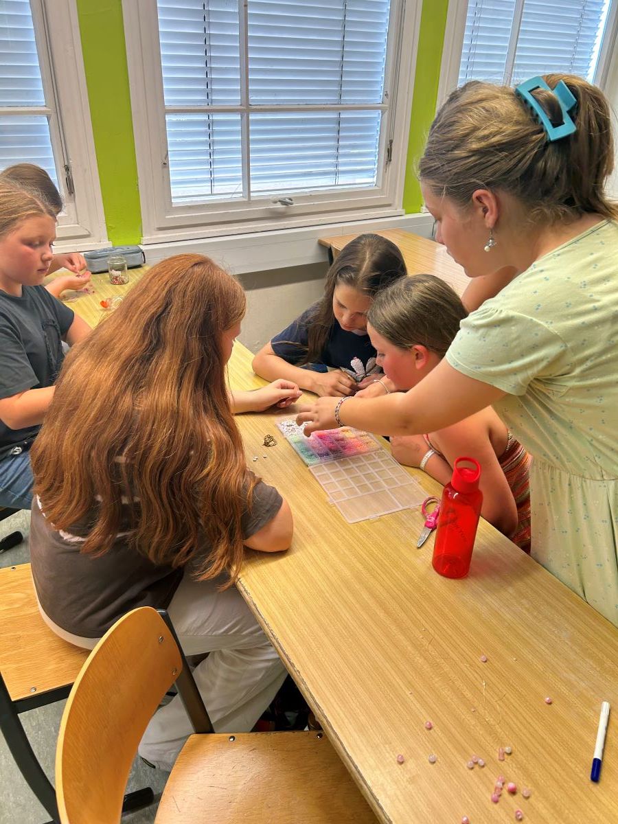 In den AGs wurde fleißig gebastelt – von bunter Dekoration bis hin zu liebevoll geknüpften Freundschaftsarmbändern war alles dabei. Den krönenden Abschluss dieser action- und spaßgeladenen Woche bildete unser Sommerfest. Dort konnten wir nicht nur die kreativ gestalteten Girlanden bewundern und den Sieger des Völkerballturniers ehren, sondern auch mit Masken und Accessoires an der Fotowand tolle Erinnerungen schaffen. Selbst zwischenzeitliche Regenschauer konnten unsere Feierlaune nicht trüben – im Gegenteil: Die Runde wurde sogar durch einige Eltern und Verwandte noch bereichert.