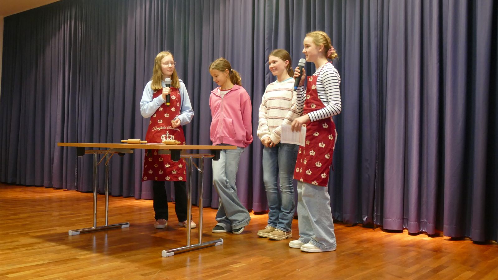Schülerin 1: wirft Schülerin 4 eine zweite Schürze zu.