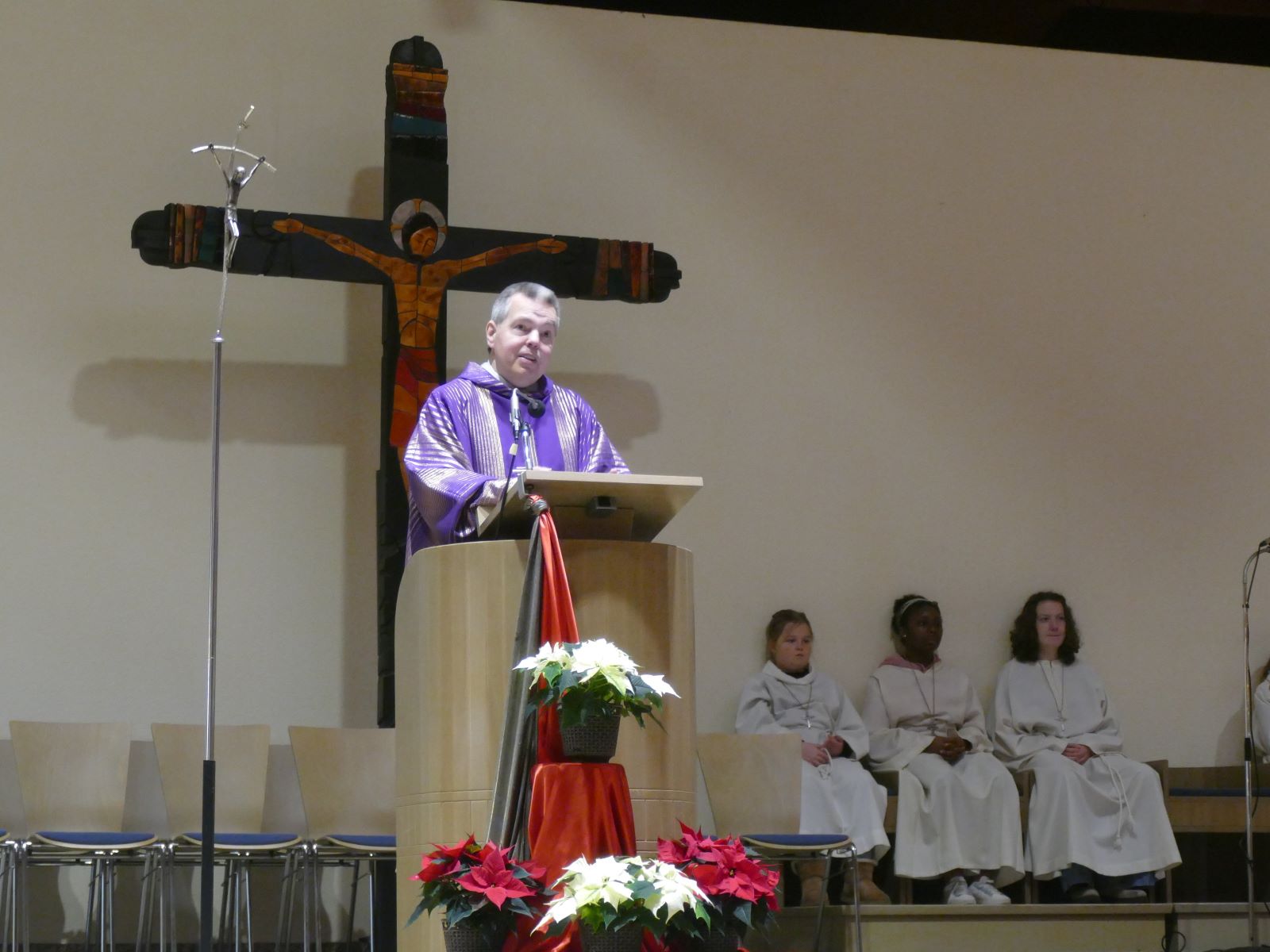 Als Hinführung zur alttestamentlichen Lesung erklärten zwei weitere Schülerinnen: „Der Prophet Jesaja spricht von Dunkelheit – und von Licht. Das Licht kommt nicht als Macht, sondern als Kind. Es bringt Frieden, der nicht laut ist, sondern leise.