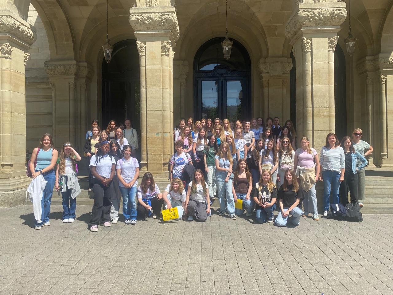 Bereits nach dem ersten Lernjahr, in der 7. Klasse, haben die Schülerinnen die Gelegenheit, ihre Sprachkenntnisse im Rahmen einer eintägigen Fahrt nach Luxemburg anzuwenden. Sie führen vor Ort zum Beispiel kleine Interviews mit Einheimischen durch und entdecken die Stadt bei einer Rallye auf eigene Faust.
