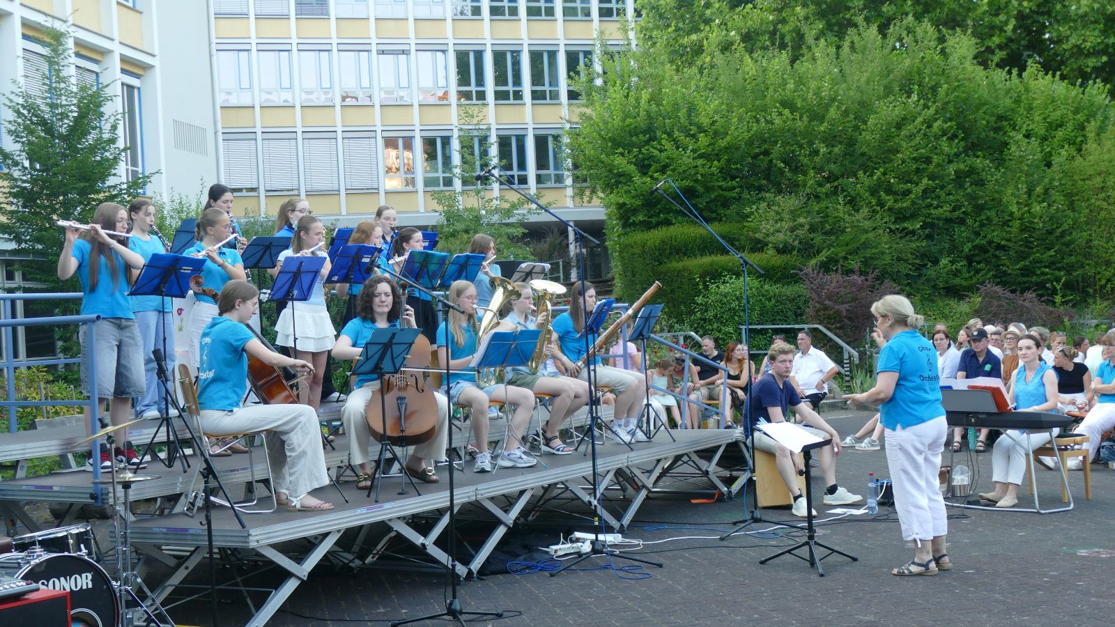 Für Instrumentalisten von Klasse 8 – 13 gibt es das große Schulorchester, jüngere Schülerinnen steigen mit dem Junior-Orchester ein (Klasse 5- 7).