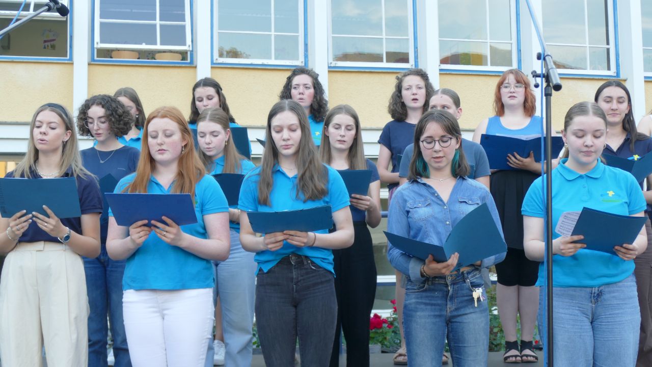 Im Schulchor singen Schülerinnen aus Klasse 6 – 13 .