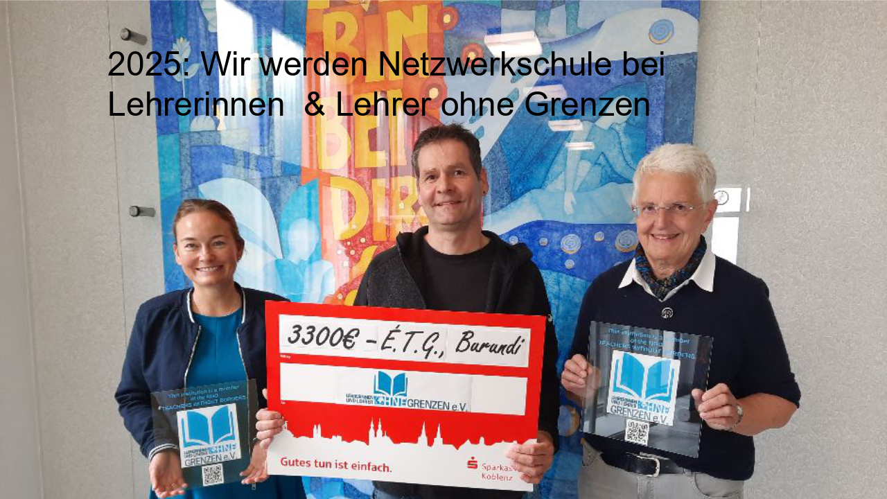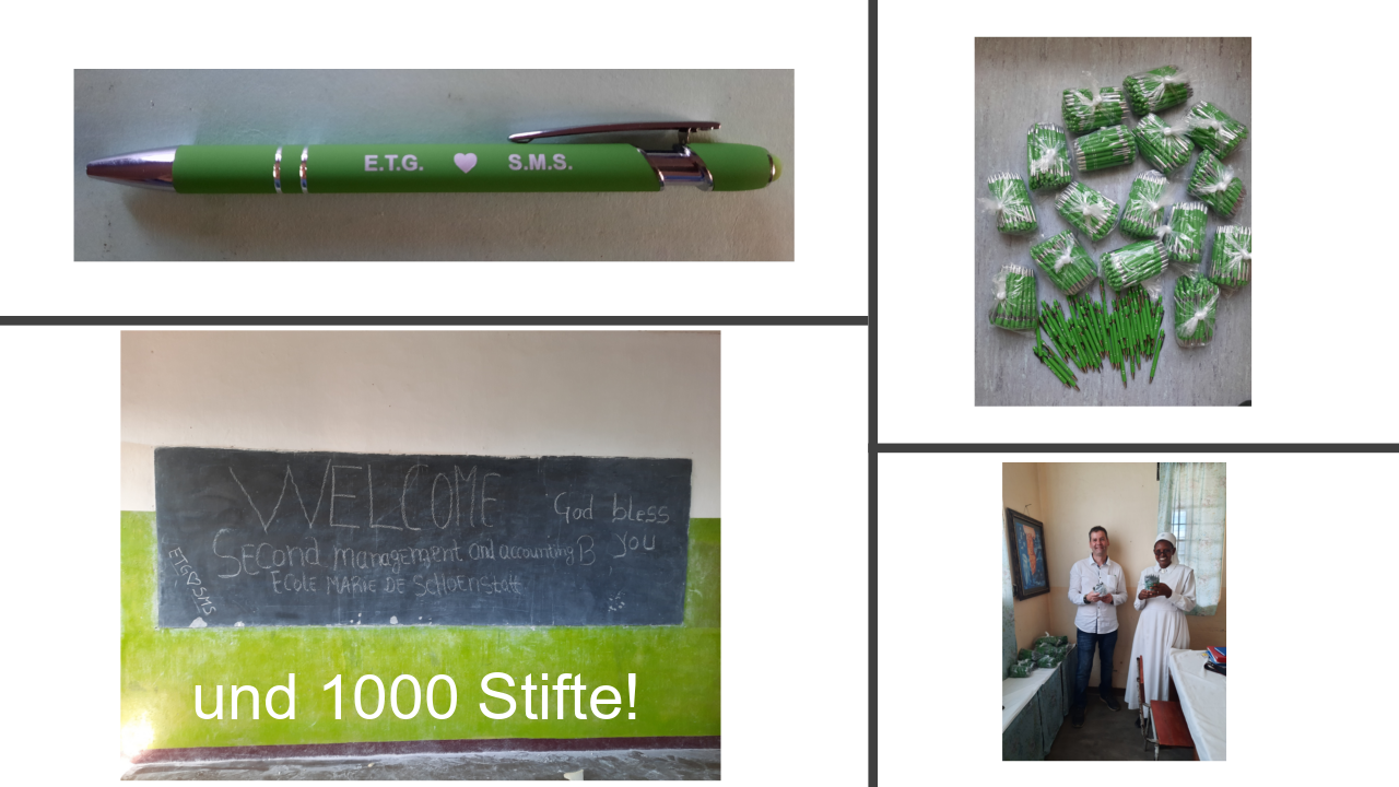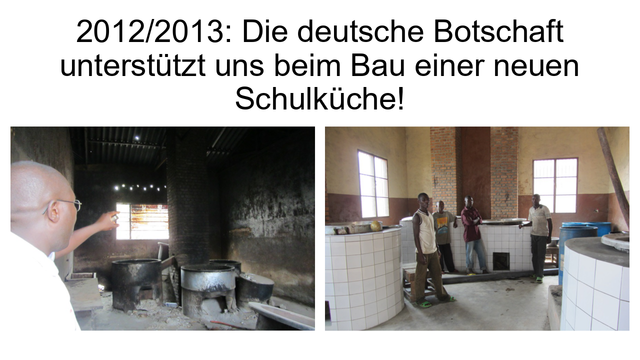 Seit 1969 engagiert sich die Schönstätter Marienschule für unsere Partnerschule ÉTG in Burundi. Nach einzelnen kleineren Aktionen wurde 2006 die Burundi-AG von Schwester Elvira gegründet und 2008 von Herrn Ullenbruch übernommen. Unter der Leitung der Arbeitsgemeinschaft konnten dann eine Vielzahl größerer Projekte wie Kuchenverkäufe, Spendenläufe, Weihnachtsmarktverkäufe, Flohmärkte und anderes regelmäßig organisiert werden. Wertschätzung erhielt die Arbeit durch Preise wie "Filippas Engel" 2014 oder den Sieg beim "Children-Wettbewerb" 2019. Durch unsere Aufnahme in das Netzwerk "Lehrer ohne Grenzen" haben sich die Möglichkeiten der Unterstützung unserer Partnerschule nun nochmals erweitert. Was die so bisher erzielten Einnahmen in Mutumba bewirken konnten, zeigen die folgenden Fotos.