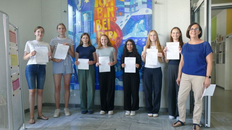 Unsere acht engagierten Schülerinnen haben sich neben dem regulären Unterricht im Rahmen eines Nachmittagsangebotes auf die Prüfung vorbereitet und ihre sprachlichen Fähigkeiten eindrucksvoll unter Beweis gestellt. Sie meisterten sowohl die schriftlichen als auch die mündlichen Aufgaben mit Bravour und erhielten ihre Zertifikate auf den Niveaustufen A2– ein starkes Zeichen für ihre Motivation, ihr Können und ihre Begeisterung für die französische Sprache und Kultur.