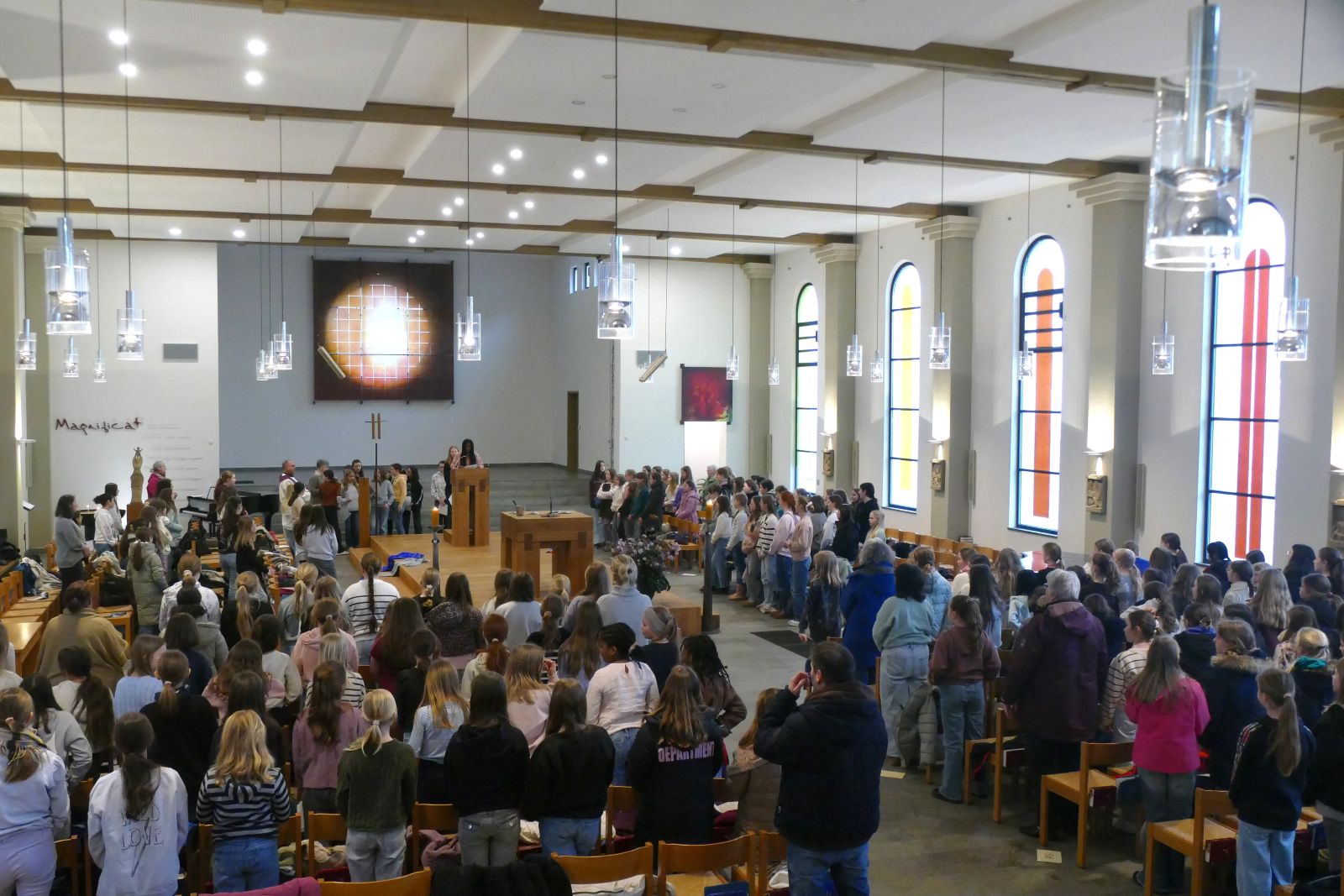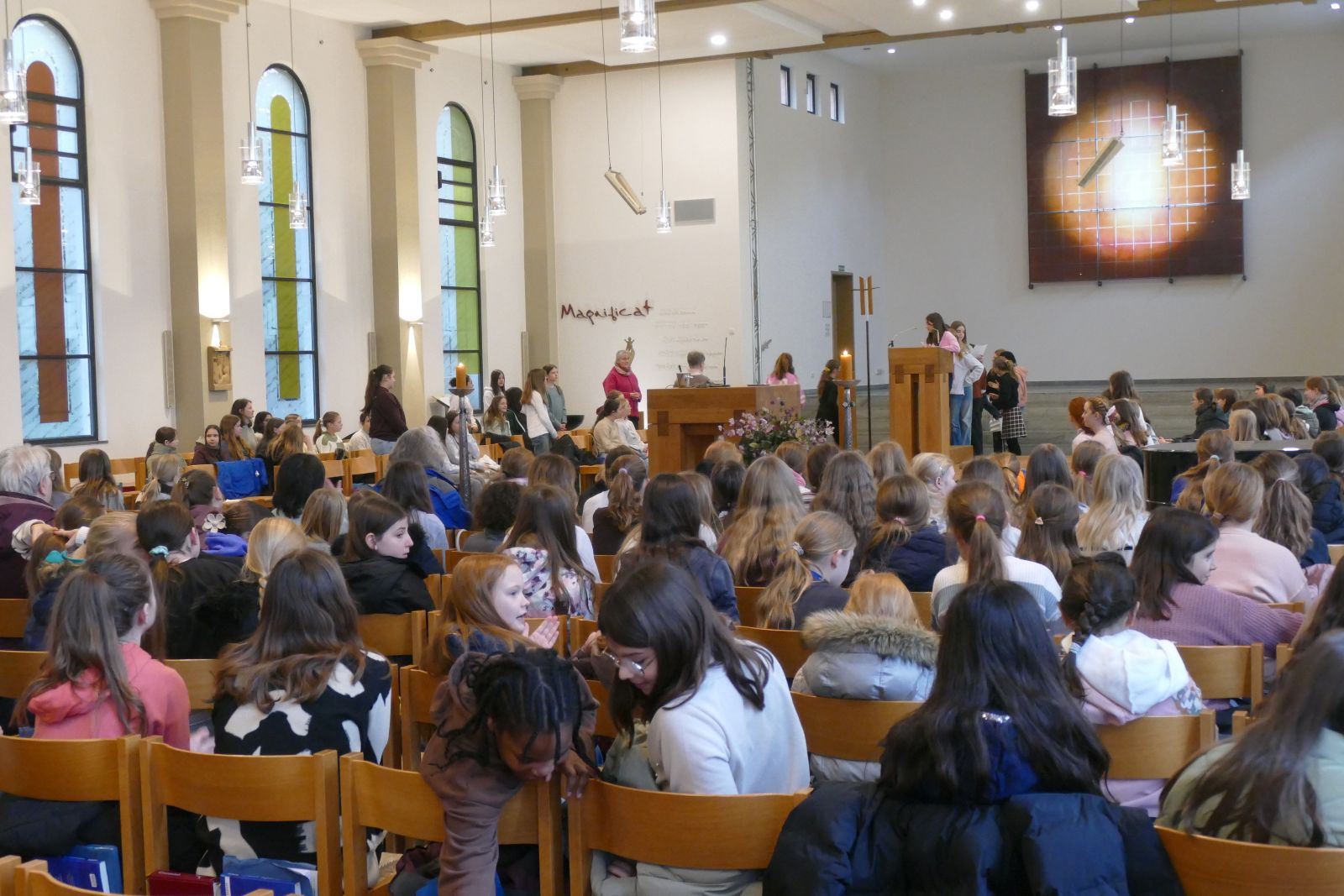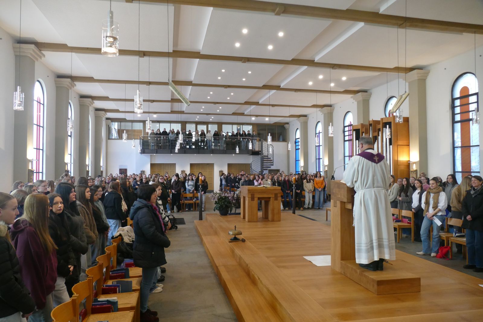 Mit einem stufeneigenen Wortgottesdienst setzten die 5. und 6. Klassen in der 2. Stunde, die 7. und 8. Klasse in der dritten und die Schülerinnen der Jahrgänge 9-13 in der vierten Stunde am Aschermittwoch ein deutliches Zeichen.
