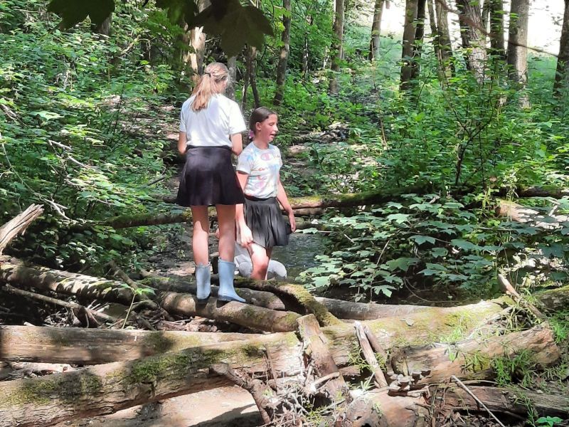 Am spannendsten war natürlich die Untersuchung der Bachlebewesen. Die meisten der gefundenen Lebewesen wie Bachflohkrebse, Eintagsfliegenlarven, Wasserskorpion und Schlammschnecke sprechen für einen Saprobienindex von 2 und somit für ein nur leicht verschmutztes Gewässer. Besonderes Highlight war der Fund mehrerer Feuersalamanderlarven, die sogar für eine Gewässergüte von 1,2 stehen, also fast sauberes Wasser. Daher können wir davon ausgehen, dass es dem Wambach und seinen Lebewesen gut geht. Und eine dicke Erdkröte konnten wir im Uferbereich auch entdecken. Mit vielen neuen Eindrücken und angereichertem Wissen um die Wichtigkeit von sauberem Wasser ging es zufrieden wieder zurück in die Schule.