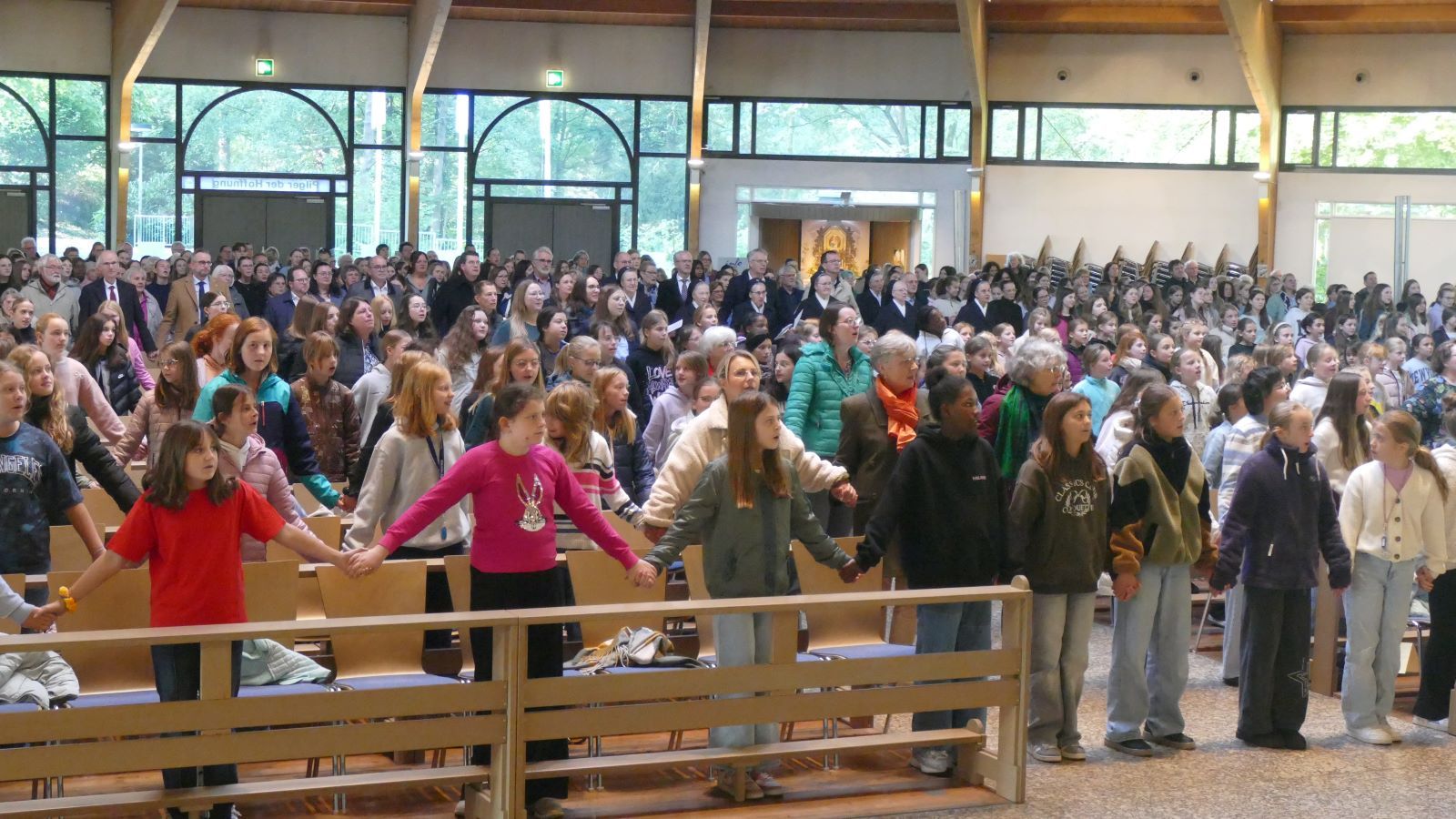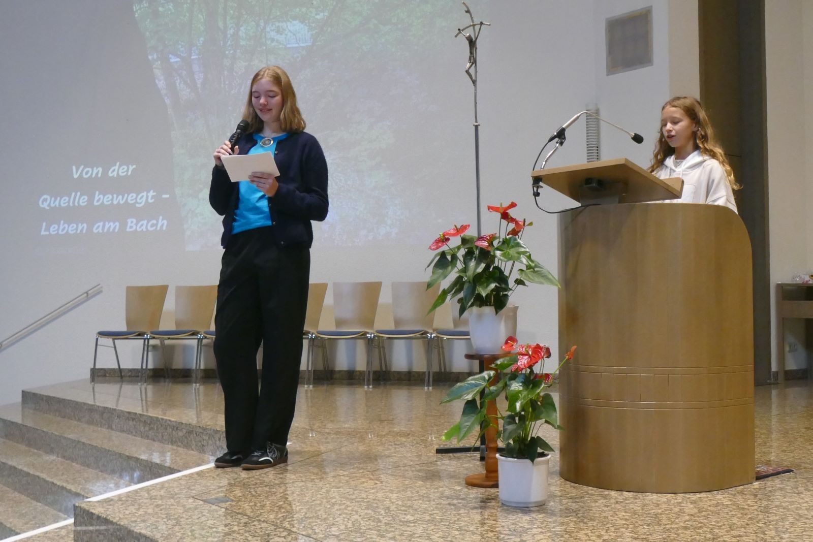 Schon der Gottesdienst in der Pilgerkirche in Schönstatt, Vallendar, mit dem „die Geburtstagsfeier“ begann, ließ aufhorchen. Das Thema „Von der Quelle bewegt – Leben am Bach“ nahm Bezug auf die Lage der Marienschule, eben am Bach, was die Vorbereitungsgruppe dazu animierte, Wasser als lebensspendendes und -lehrendes Elixier zum roten Faden des Gottesdienstes zu machen.