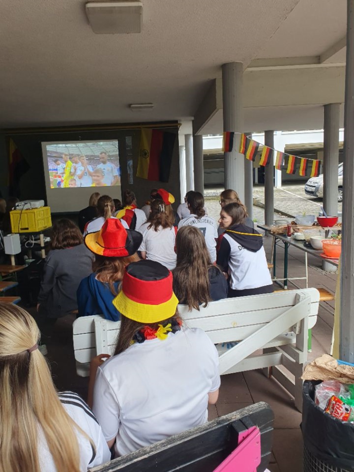 Toooor, hieß 25.06., als wir bei einem gemeinsamen Public Viewing auf dem Schulhof das Spiel Deutschland gegen Ungarn verfolgten. Bei gemeinsamen Grillen und mit einem großen Buffet verfolgten wir gespannt das erfolgreiche Spiel der deutschen Nationalmannschaft, das uns bestimmt noch lange in Erinnerung bleiben wird.