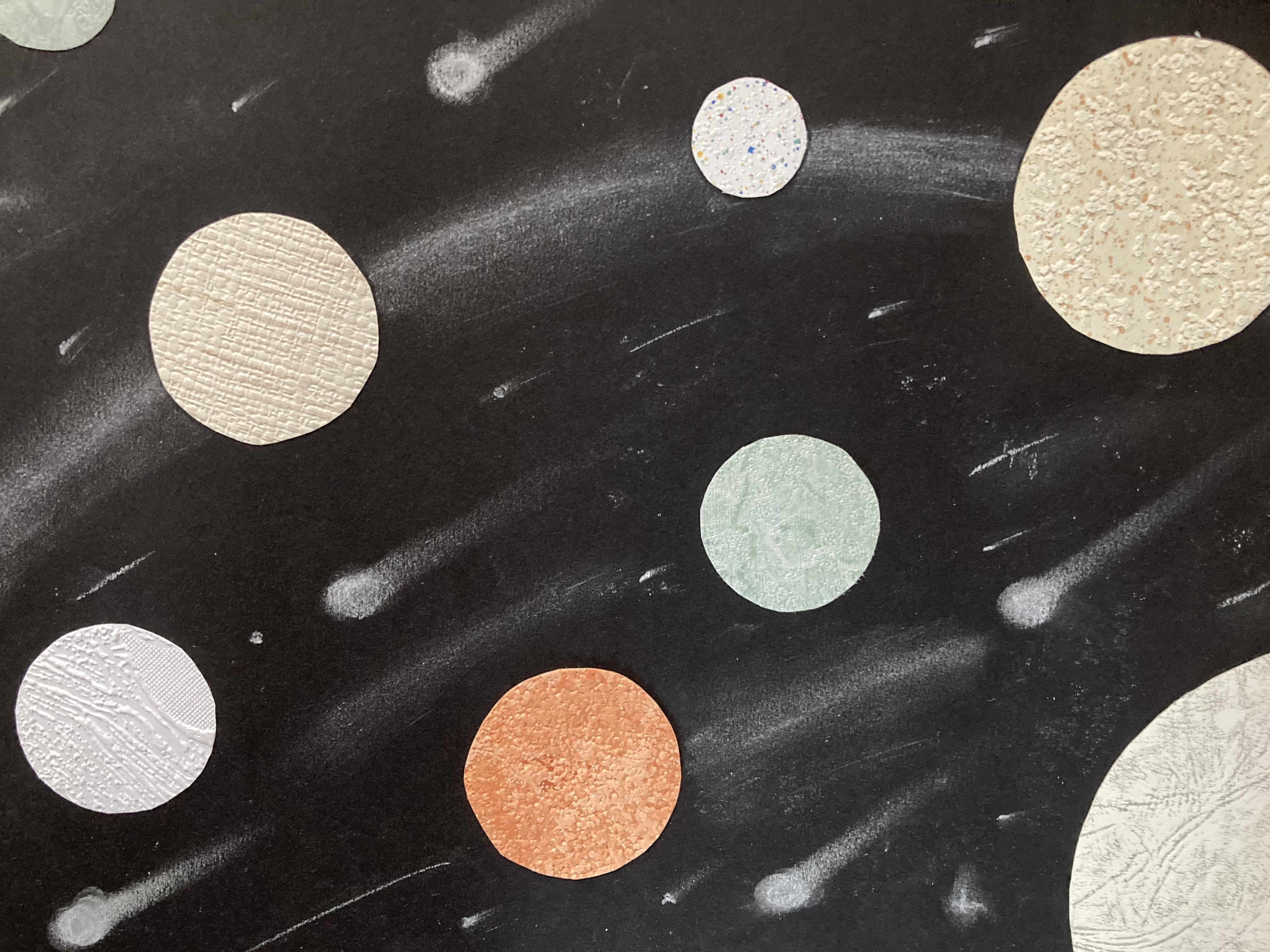 Ein paar Tapetenreste, Schere, Kleber, Kreide - und schon entsteht ein Blick in die unendlichen Weiten des Weltalls!