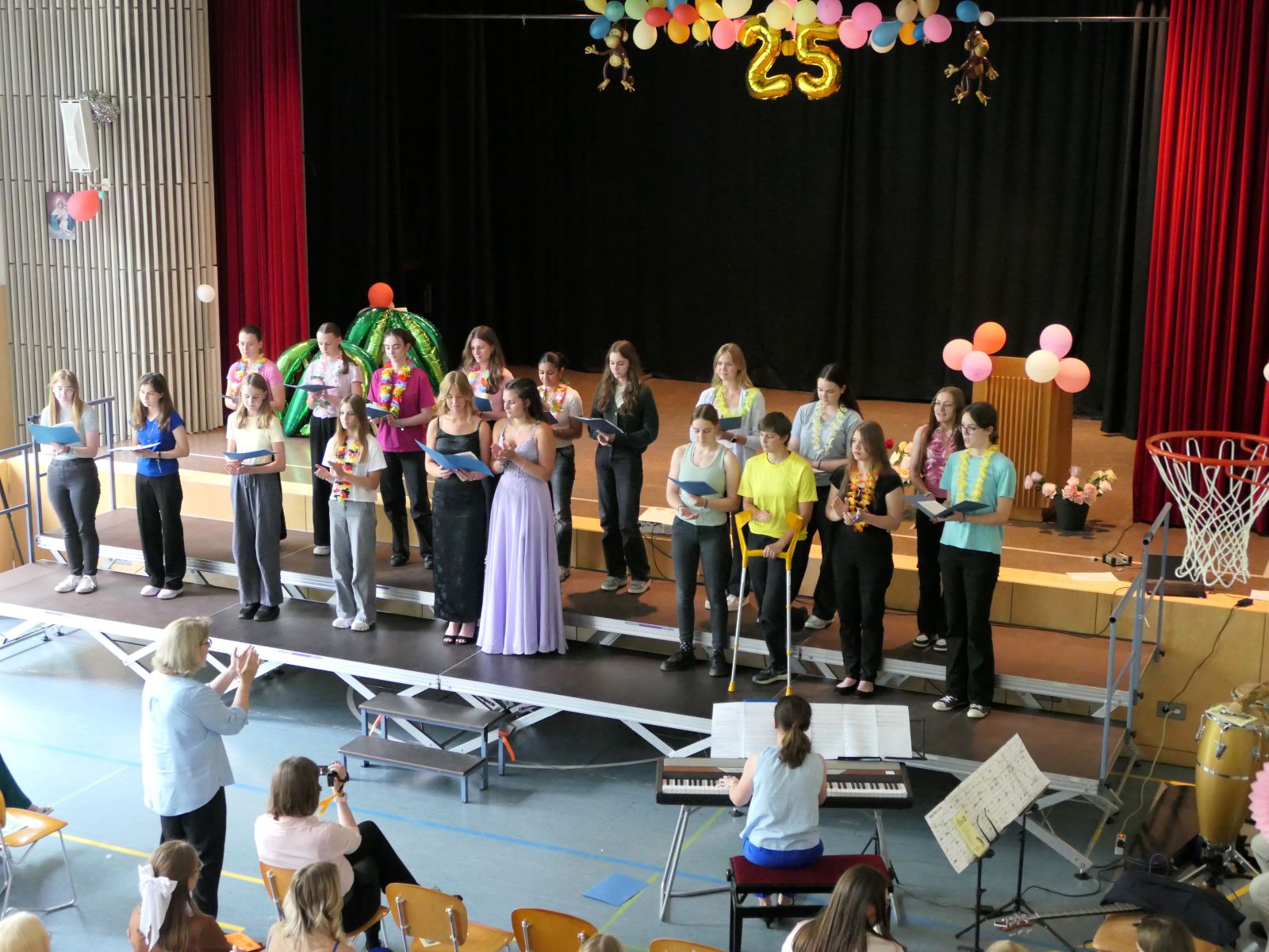 Bereits eine Woche vor allen anderen, verabschiedete die Realschule plus der Schönstätter Marienschule in Vallendar ihren Abschlussjahrgang in die Sommerferien. Unter dem Motto „AKloha‘25“ veredelten sich 39 junge Damen das Ende der Schulzeit mit dem Qualifizierten Sekundarabschluss I. Mit Stolz blicken die Lehrerinnen und Lehrer auf den kleinen, aber feinen Jahrgang zurück und wünschen den Absolventinnen alles Gute und viel Erfolg für die Zukunft. Mögen sie die perfekte Welle finden, auf der sie ihren Träumen und Wünschen sicher entgegen surfen können.