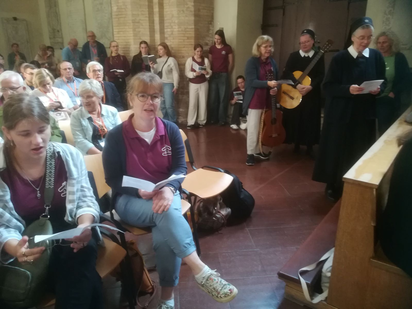 Ein Highlight der Reise war die Teilnahme an der Papstaudienz am Mittwoch, den 15.10. Auf dem randvoll gefüllten Petersplatz hörten wir die Predigt des Heiligen Vaters. Viele verfolgten seine Ausführungen mithilfe der deutschen Simultanübersetzung via „Vatican news“. Wer die Papstaudienz per Video nacherleben möchte, findet alle Bilder und Texte auf der Internetseite „Der Heilige Stuhl“ (https://www.vatican.va/content/leo-xiv/de/events/event.dir.html/content/vaticanevents/de/2025/10/15/udienza-generale.html und die gesamte Ansprache