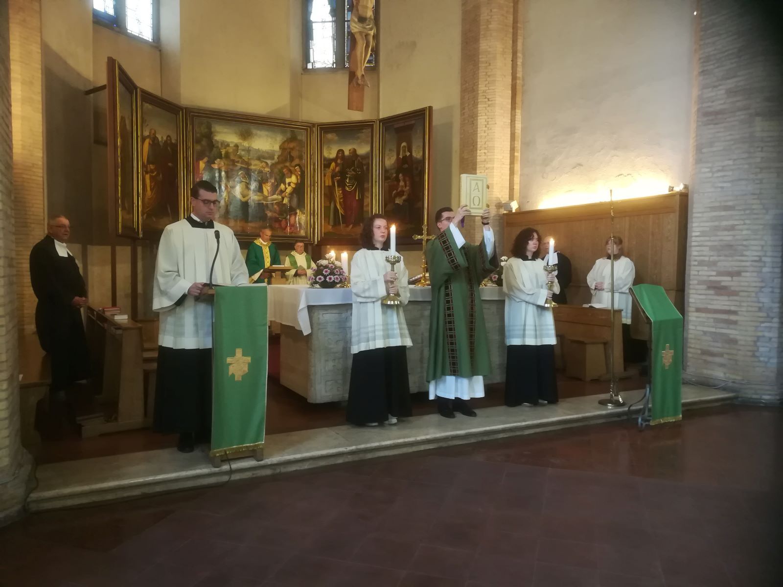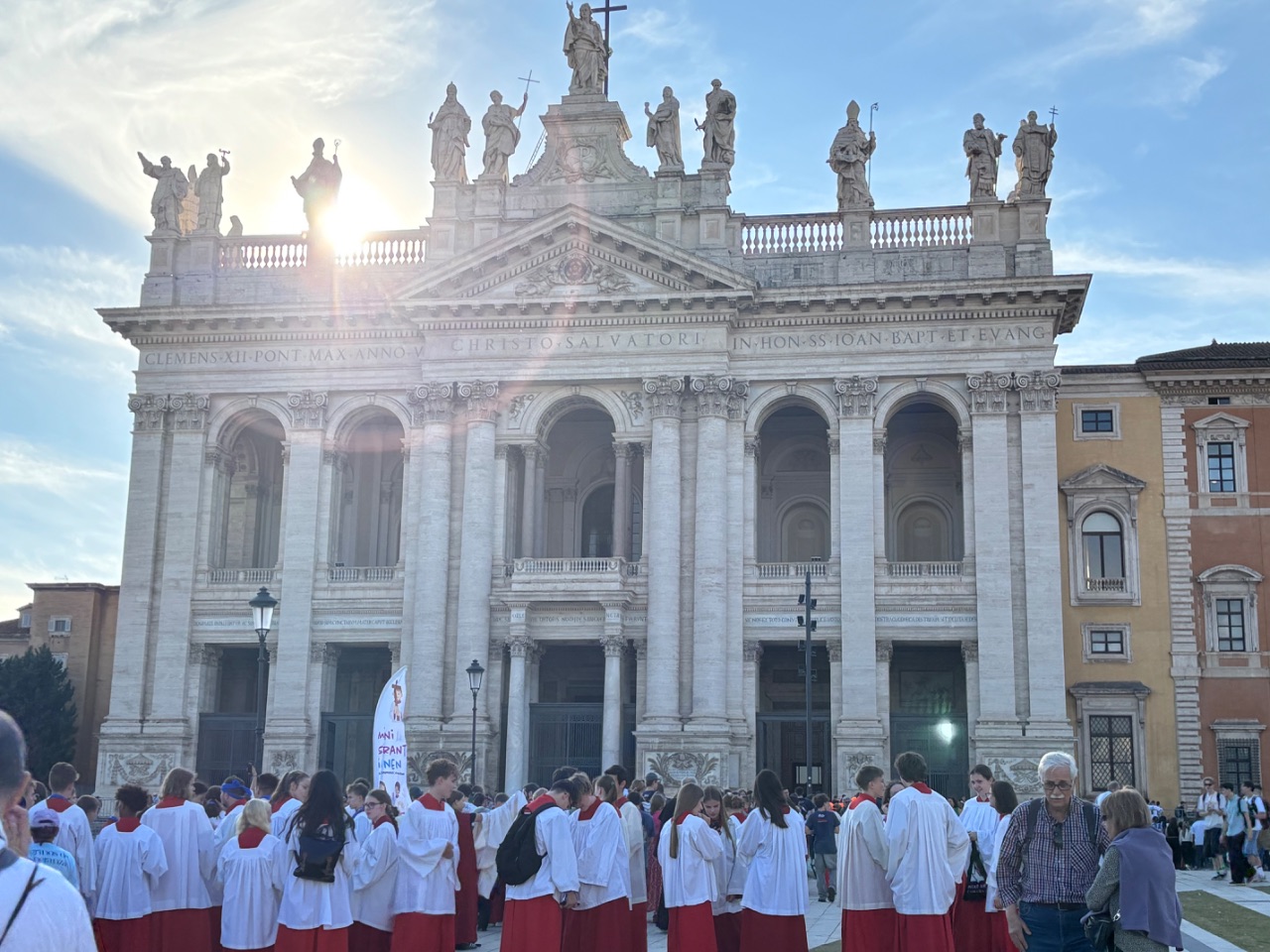 So schön es ist, fremde Sprachen zu hören – es tat gut, den Sonntagsgottesdienst in der Muttersprache mitfeiern zu dürfen. Beide Reisegruppen der SMS trafen sich dazu am Sonntag auf dem „campo santo“ im Schatten des Petersdomes. Wir gestalteten die Heilige Messe musikalisch mit und drei Messdienerinnen aus der SMS dienten am Altar.