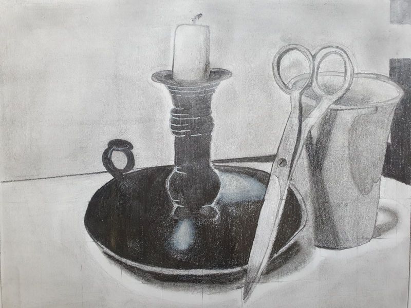Der nächste Schritt bestand darin, das Stillleben zeichnerisch wiederzugeben,  was Darla M. aus der 8a besonders gut gelang. Herzlichen Glückwunsch, liebe Darla.