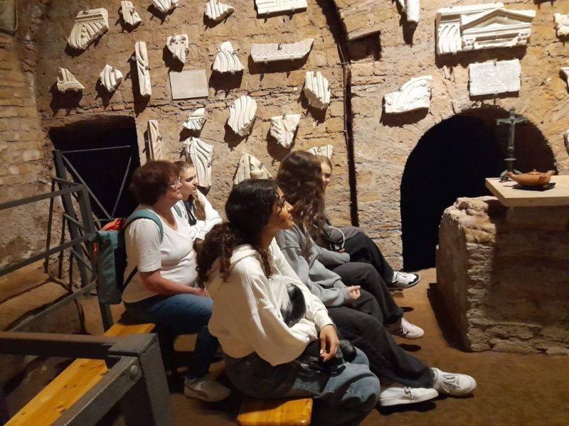 In Rom angekommen erwartete die Lateinerinnen ungewohnter Lateinunterricht an der Liceo statale Avogadro und ein umfangreiches Besichtigungsprogramm. Gemeinsam mit italienischen Schülerinnen und ihrer Lehrerin entdeckten sie Ursprünge der Demokratie auf dem Forum Romanum, erkundeten christliche Ursprünge in den Katakomben und am Pantheon und erspürten mit allen Sinnen moderne Kunst im Maxxi.