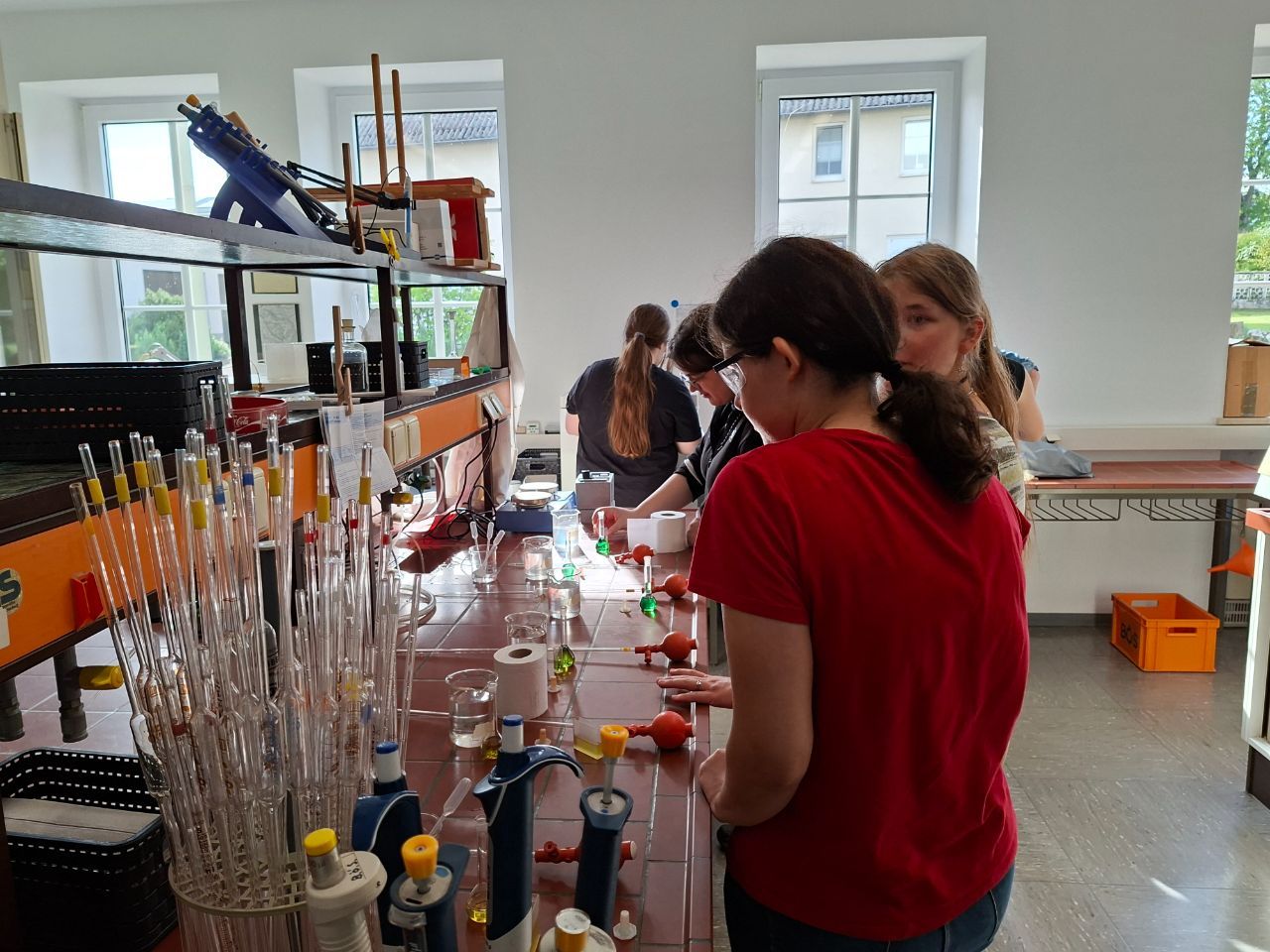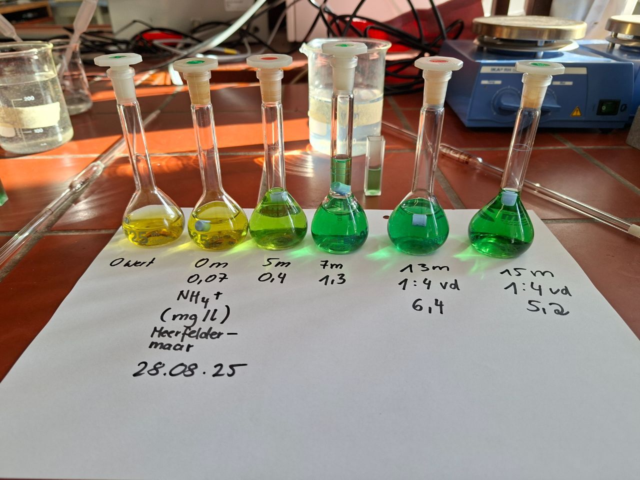 Zurück in der Station ging es unter Anleitung von Frau Karger ans Mikroskopieren des Planktons. Das Staunen und die Begeisterung waren groß, als die Schülerinnen beim Blick durch das Mikroskop die Vielfalt des Planktons entdecken konnten. Parallel konnten Schülerinnen die verschiedenen mitgebrachten Wasserproben bei Herrn Dawen im Labor auf ihren Nitrat-, Phosphat- und Ammoniumgehalt hin untersuchen.