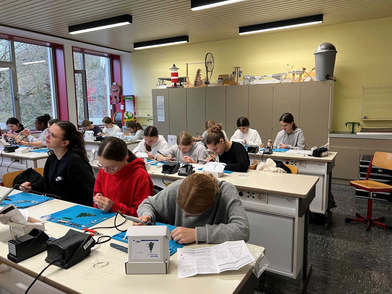 Löten für die Wissenschaft: Physik-Schülerinnen der Klassen 8c und Grundkurs 11 gestalten blinkende LED-Tannenbäume