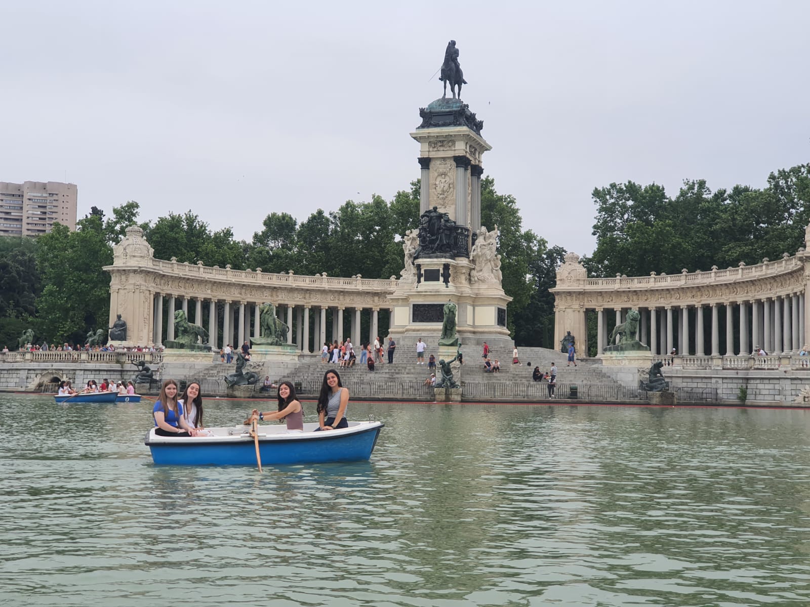 Nach dem Unterricht stand ein Ausflug auf dem Programm, ein Besuch des „Parque del Retiro“. Zuerst sind wir Boot gefahren, was bei dem warmen Wetter eine willkommene Abkühlung war. Danach besuchten wir den Königspalast, wo wir eine Galerie – ein Museum – besichtigten. Dort gab es viele beeindruckende Exponate aus früheren Zeiten zu sehen, unter anderem Kutschen, alte Gemälde, Wandteppiche und vieles mehr. Es war sehr interessant zu erfahren, wie die Menschen damals lebten und welche Kunstformen es gab.