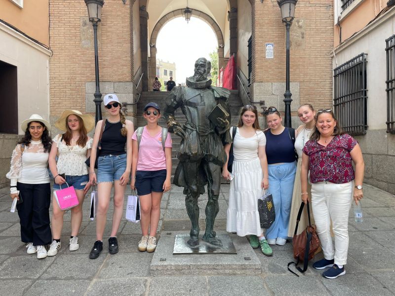 Am Donnerstag, den 12.06., sind wir, die deutschen Schülerinnen, morgens in die Stadt Toledo gefahren. Dort liefen gerade die Vorbereitungen für Fronleichnam, sodass wir die verschiedenen Dekorationen bewundern konnten. Am Vormittag besuchten wir die Kathedrale, in der es sowohl Kunstwerke als auch goldgeschmückte Fassaden zu sehen gab.