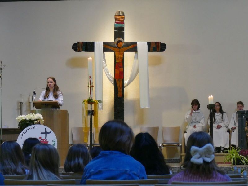 Beim diesjährigen Maigottesdienst in der Pilgerkirche, den Schülerinnen der Jahrgangsstufe 11 unter der Leitung von Frau Schunk vorbereitet hatten, stand das 1700-jährige Jubiläum des Großen Glaubensbekenntnisses im Mittelpunkt. In der feierlichen Liturgie am 13.05.2025 erinnerten die Schülerinnen gemeinsam mit Lehrkräften und Gästen an das Konzil von Nicäa im Jahr 325, bei dem das Bekenntnis zu Jesus Christus als wahrem Gott und wahrem Menschen formuliert worden ist. Ein besonderer Fokus lag auch auf Maria, deren Vertrauen und Bereitschaft für viele als Vorbild im Glauben gilt.