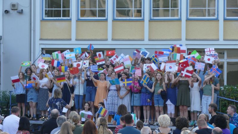 Die Schulleiterin wünschte der ganzen Schulgemeinschaft schöne und erholsame Ferien. "Music around the world" wird in den nächsten Wochen an viele Orten erklingen und ihren Beitrag zur Entspannung und Muße leisten.